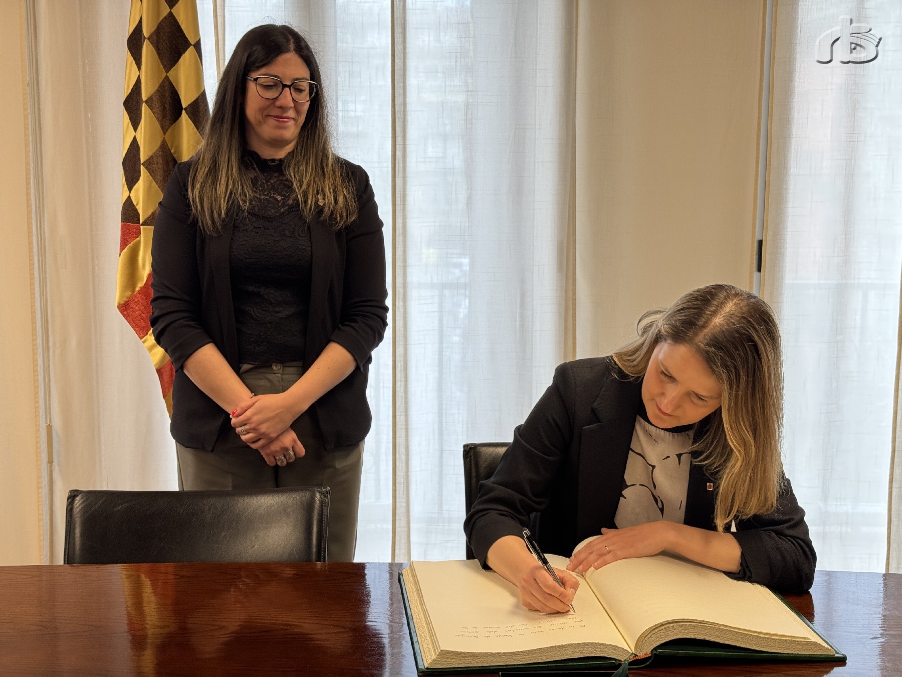 A la casa de la Paeria ha estat rebuda per la paera en cap, Lorena González, a més d'altres regidors i autoritats. Després de signar el Llibre d'Or de la Ciutat, la consellera ha mantingut una reunió de treball amb l'equip de govern i els membres del Consell Comarcal de la Noguera, al mateix despatx.