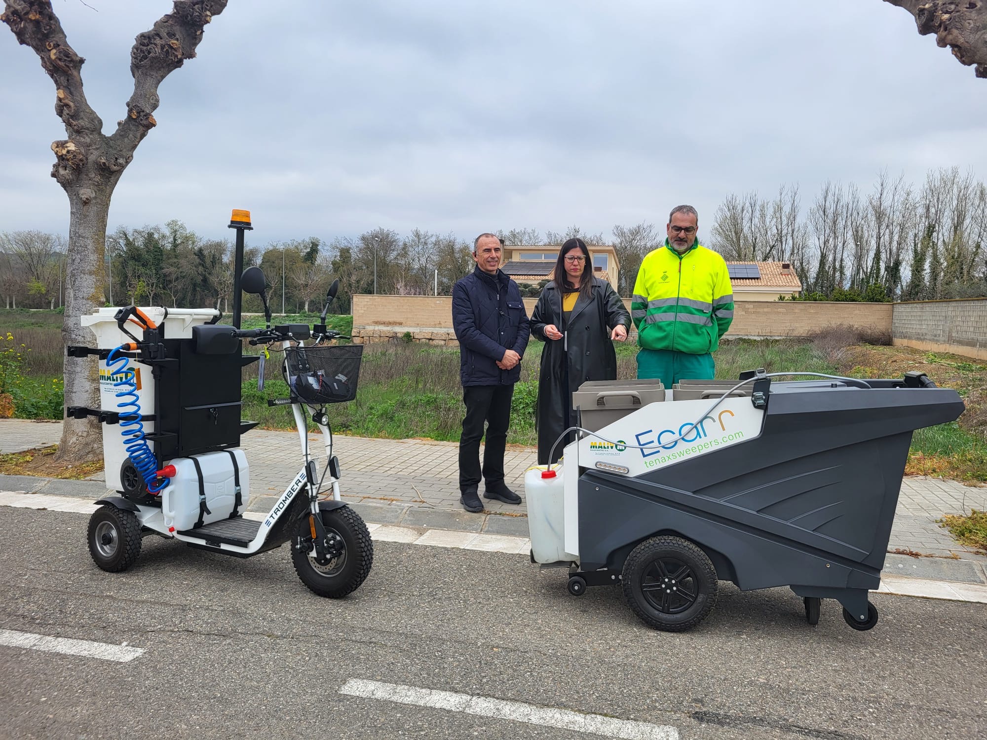 El passat dijous, una de les empreses subministradores va fer una demostració d’una màquina escombradora i netejadora equipada amb sistemes molt més eficients per a la neteja de carrers. També es van poder veure altres dues màquines destinades a la neteja. D’una banda, un carret elèctric per facilitar la feina als escombriaires i, de l’altra, un patinet també elèctric, que facilitaria els temps de desplaçament i disminuiria la càrrega que han d’arrossegar.