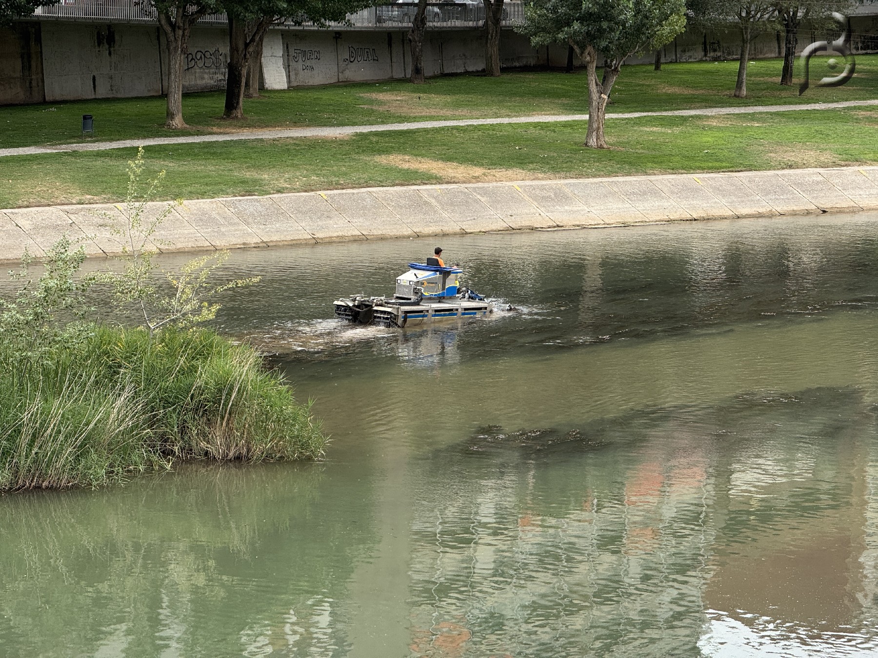 Les tasques les duu a terme una empresa especialitzada que ha començat a actuar aquesta setmana amb un vehicle amfibi, amb l'objectiu de netejar l'abundant quantitat d'algues que aquestes darreres setmanes s'han acumulat a una bona part del tram del riu.