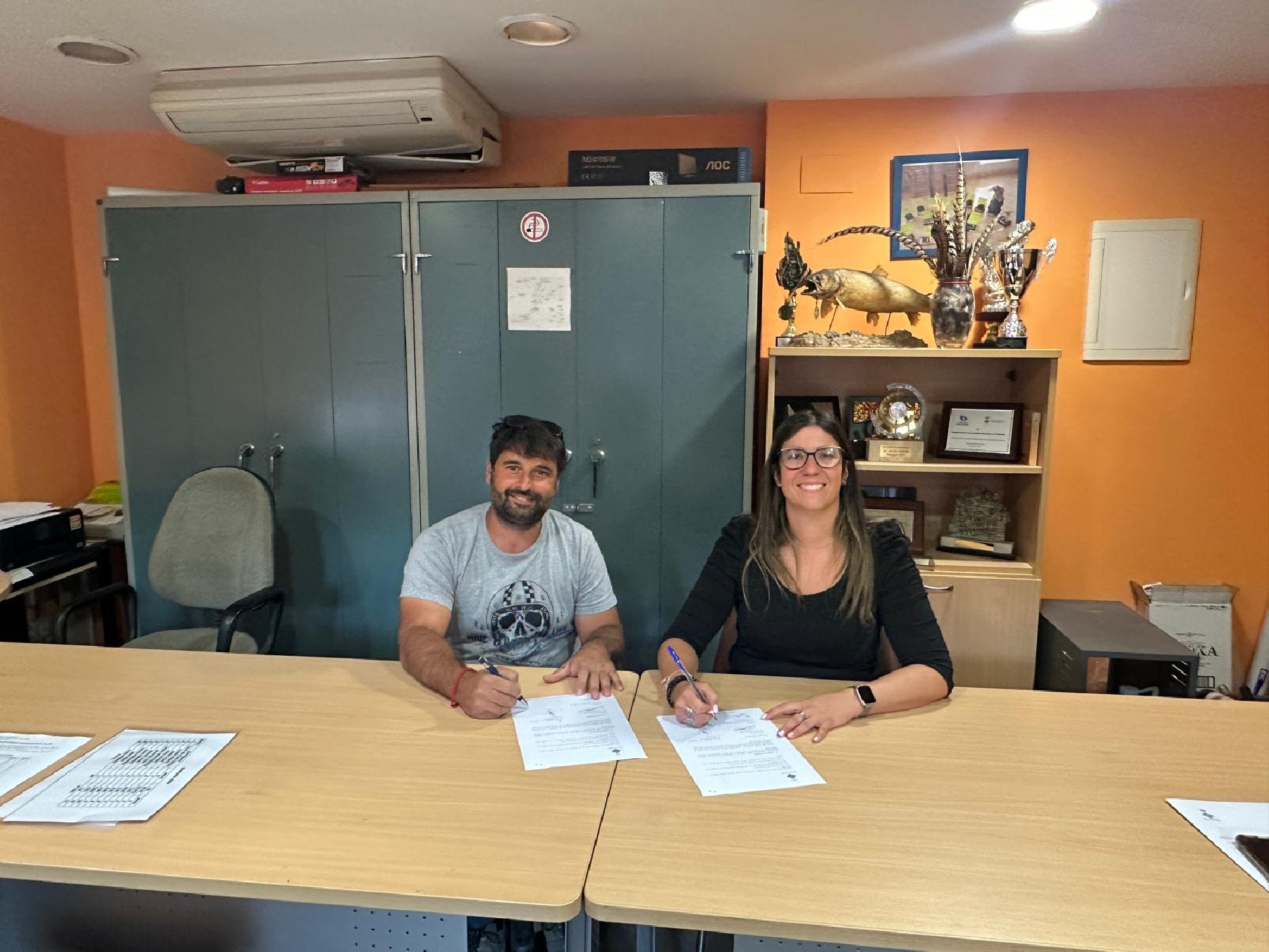 La paera en cap de Balaguer, Lorena González, ha signat aquest dimarts un conveni amb la Societat de Pescadors Esportius de Balaguer i la Societat de caçadors l'Espiga, per tal de cedir-los els diversos espais de la Torre Sangenís com a seu social.
