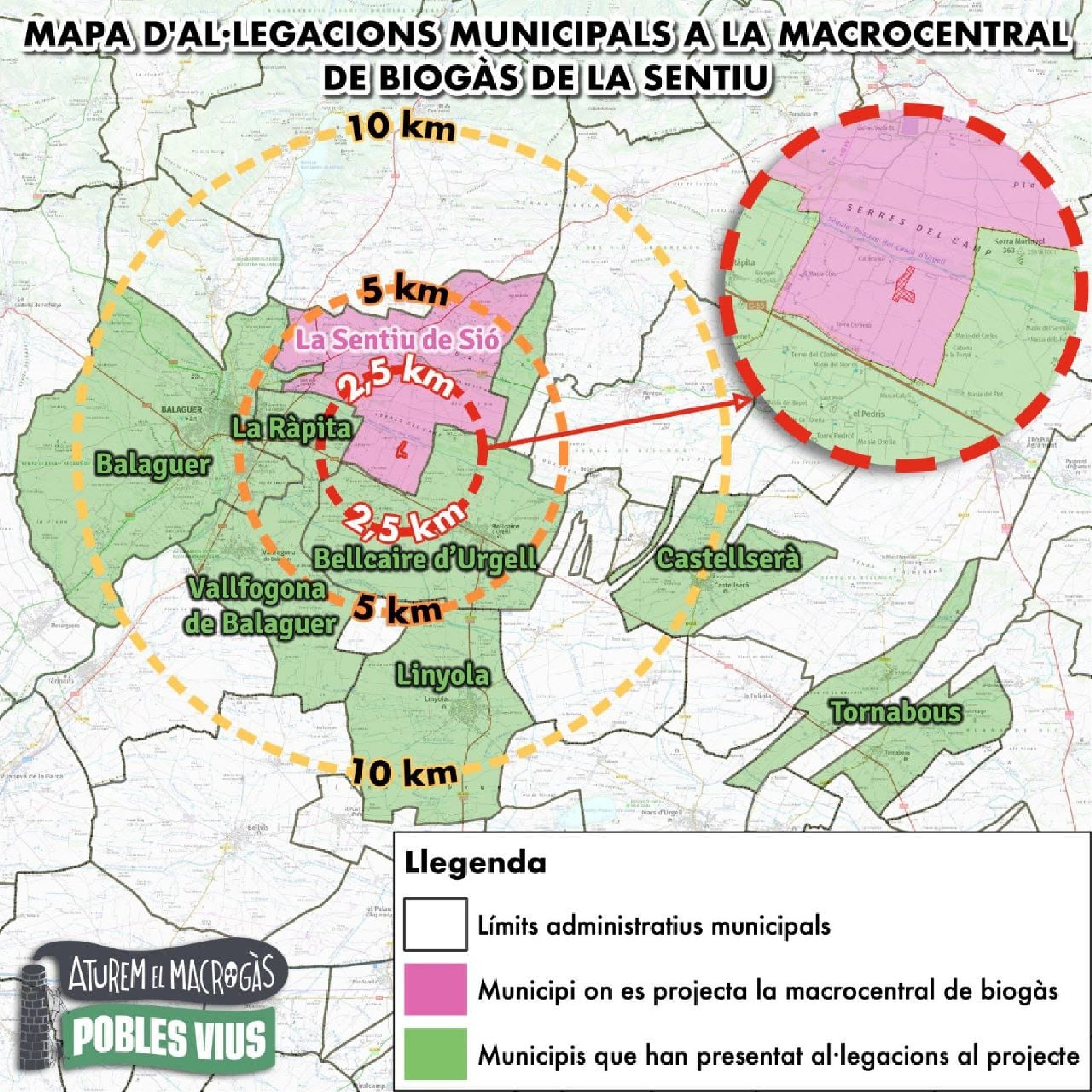 La de La Sentiu és la planta de biogàs més gran de Catalunya, projectada per l'empresa danesa Copenhagen Infraestructure Partners (CIP), que preveu aprofitar residus ramaders per produir biometà i vendre'l a distribuïdores. Mentre que la Generalitat assegura que el projecte "compleix els condicionants d'inversió", la plataforma considera que el document conté mancances a nivell urbanístic i paisatgístic, a més d'afectar la bioseguretat de la zona i el medi ambient.
