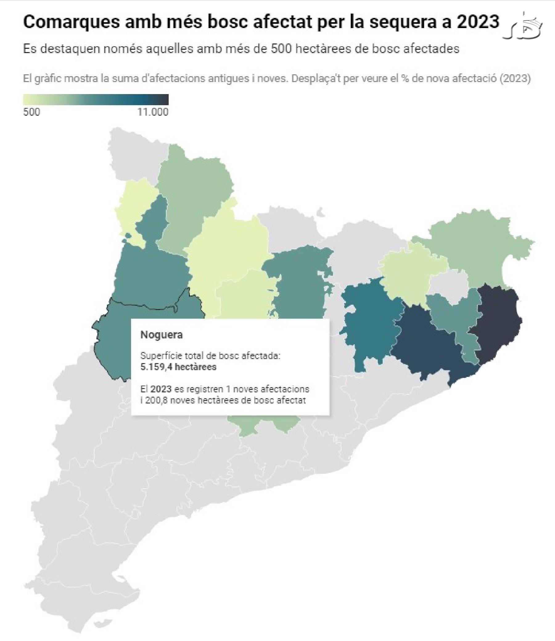 La sequera afecta 66.500 hectàrees de boscos, el doble que les del 2022. Els arbres de les comarques del nord-est del país són els més perjudicats
