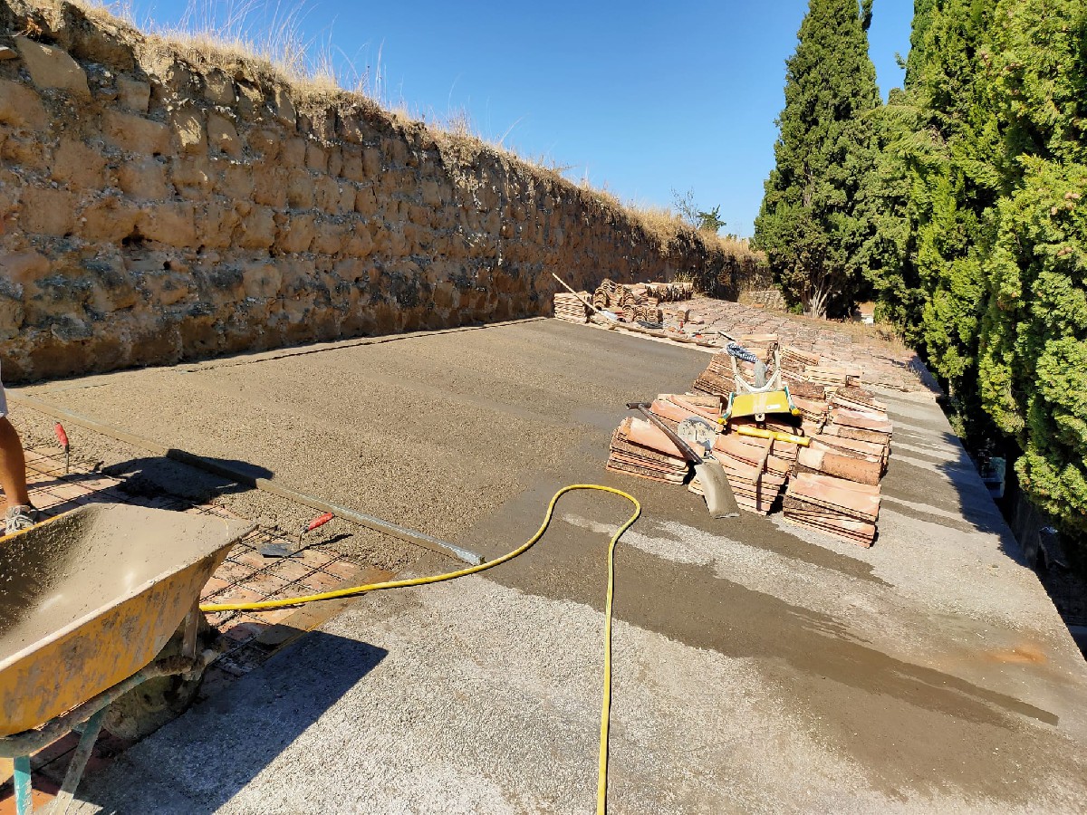 L'obra consisteix en retirar les teules antigues que estaven trencades, per posar una capa de compressió, una segona d'impermeabilització i poder refer posteriorment tota la coberta amb teula àrab.