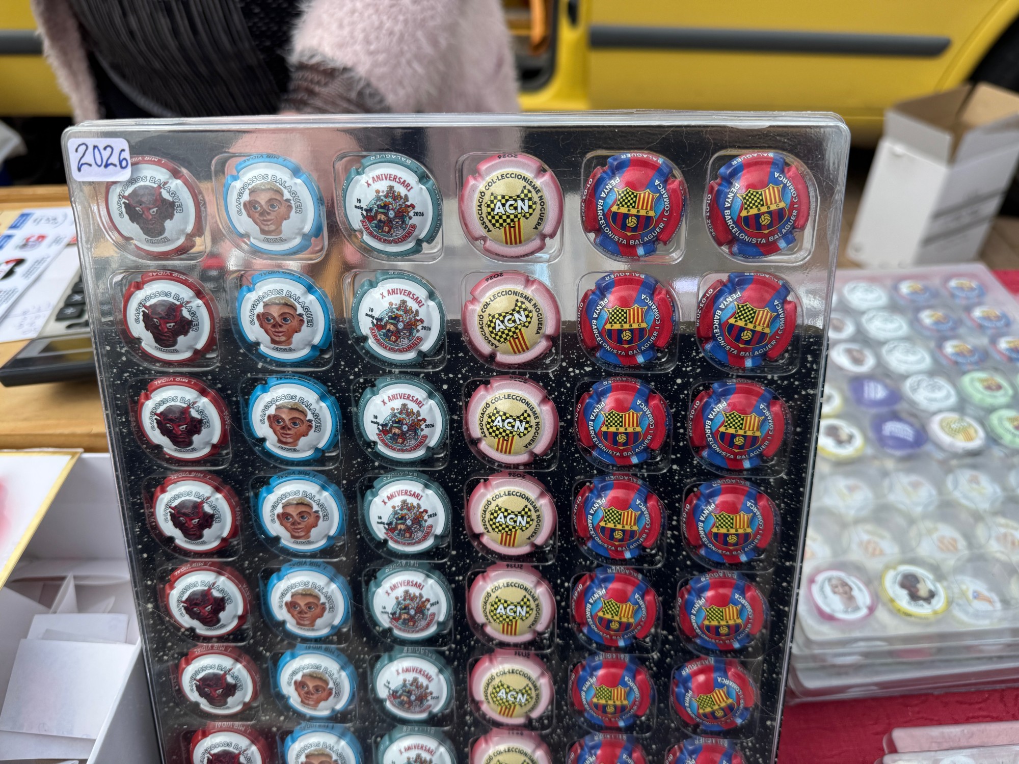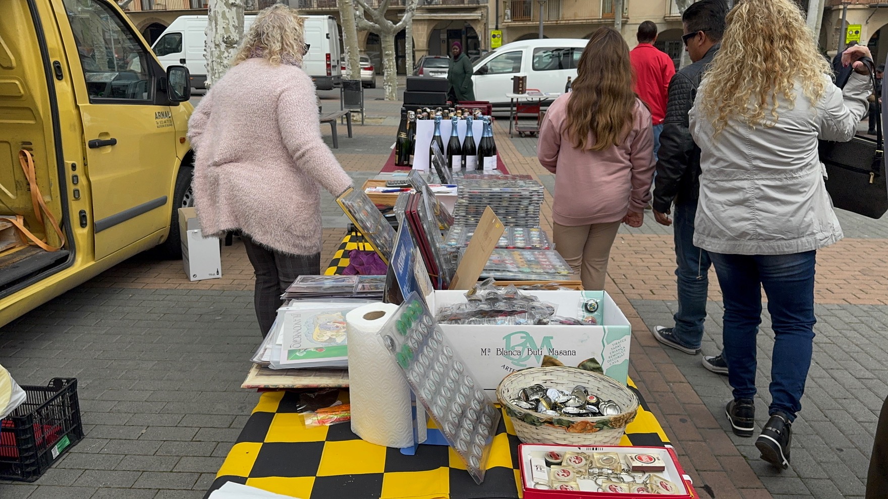 Des de primera hora, l’espai central de la plaça s’ha omplert de taules i expositors, amb una desena de parades, on col·leccionistes han intercanviat plaques de cava, taps corona i tota mena d’objectes singulars. Durant quatre hores, entre les nou i la una del migdia, l’espai s’ha convertit en punt de trobada per compartir peces, experiències i noves incorporacions per a les col·leccions particulars.