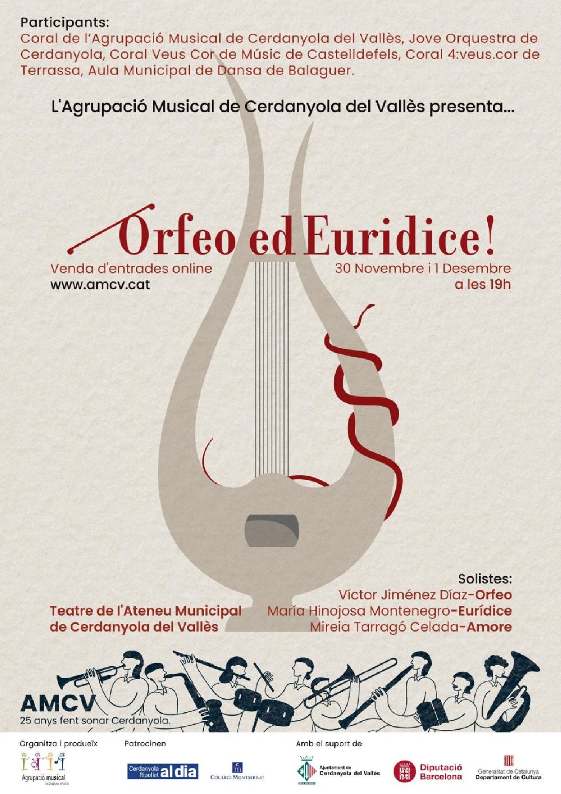 El repartiment principal inclou el contratenor Víctor Jiménez Díaz com a Orfeo, María Hinojosa com a Euridice i Mireia Tarragó en el paper d'Amore. La Jove Orquestra de Cerdanyola, dirigida per Borja Mascaró, serà l'encarregada d'interpretar la música, mentre que la direcció escènica va a càrrec de Manel Cubeles, amb el suport de les corals Veus Cor de Músic de Castelldefels i 4 Veus Cor de Terrassa.