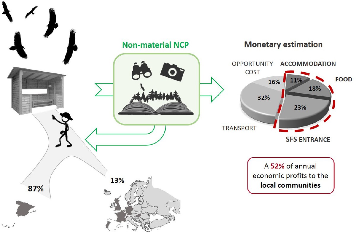 Els investigadors han elaborat la primera valoració econòmica de les experiències recreatives i educatives aportades pel turisme basat en aus carronyaires a Espanya; i la seva important contribució als ingressos de la població local. Han tingut en compte conceptes com els trasllats, l'allotjament, l'alimentació, el preu de l'entrada als llocs d'alimentació, així com el temps d'estada.