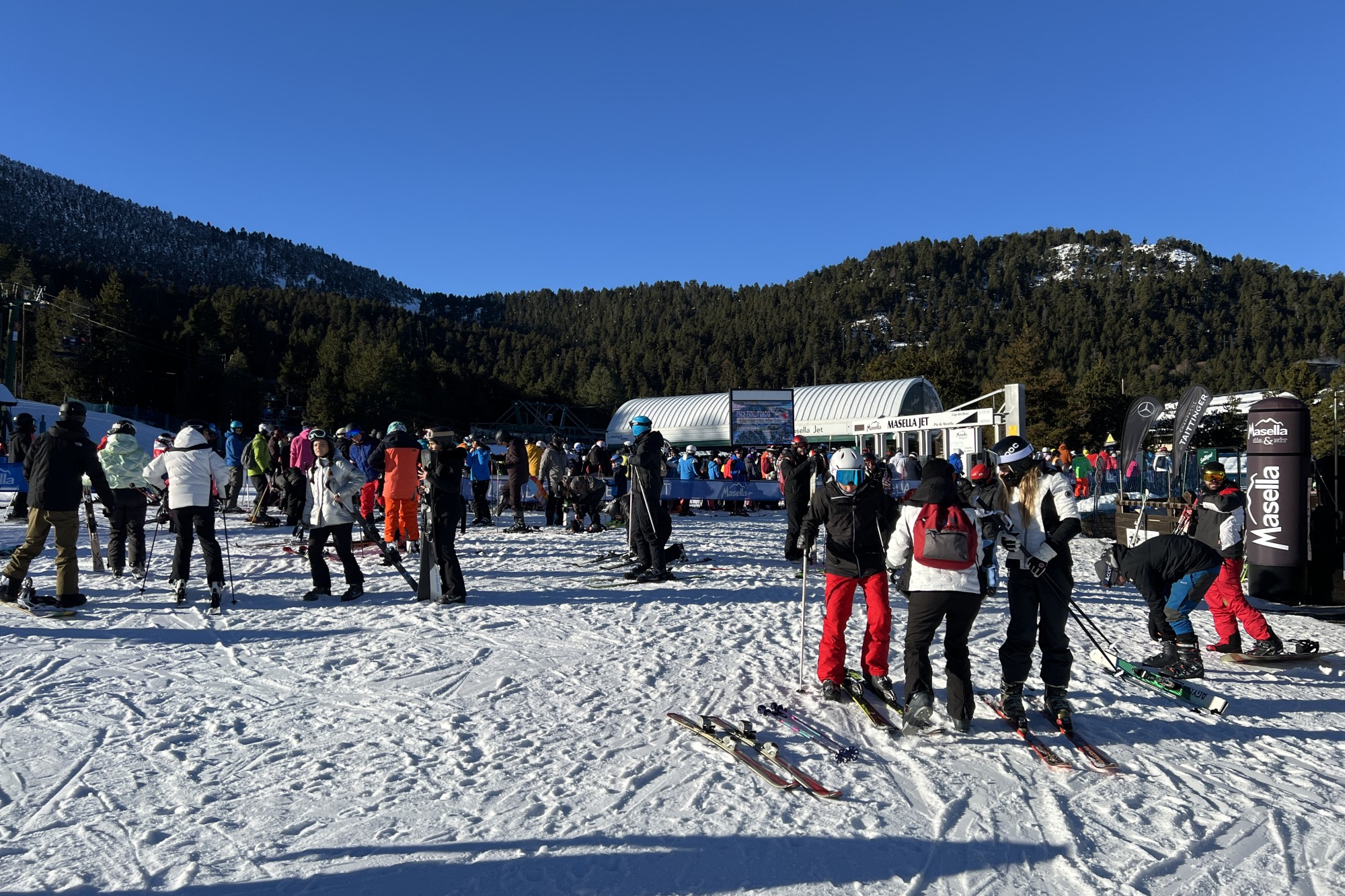Els accessos a l'estació d'esquí de Masella (Cerdanya) registraven unes retencions d'uns cinc quilòmetres cap a les nou del matí d'aquest dimarts. De fet, aquests dies hi passen d'entre 8.000 i 9.000 persones per aquest camp de neu. Dos dels que ho han fet han estat en Jaume Pompido i el seu fill Biel, que han explicat que feia anys que no veien "aquesta neu tant fantàstica" i que per això han anat a gaudir-la "amb seguretat".