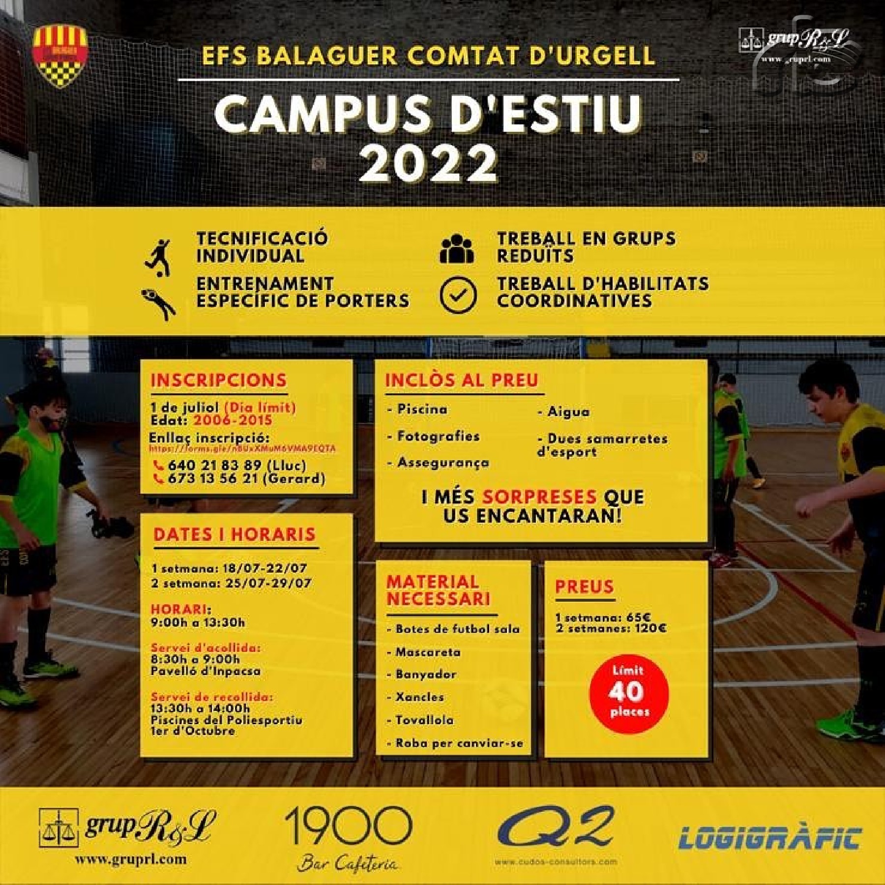 L'Escola de Futbol Sala Comtat d'Urgell realitzarà el seu Campus d'Estiu del 18 al 29 de juliol, per oferir als infants participants uns dies de tecnificació i diversió en aquest esport