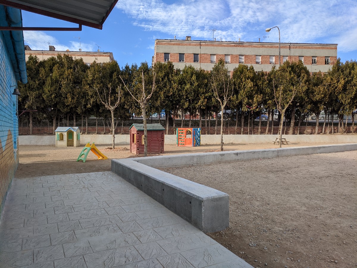 L'actuació consisteix en habilitar una nova zona d'esbarjo al pati d'educació infantil, unes tasques que ja es van iniciar a l'estiu de la mà de la Paeria i l'Ampa, i que van consistir en l'habilitació d'un mur de contenció per millorar el drenatge de la zona i eliminar el pendent existent.