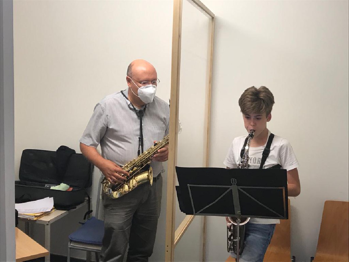 Pel que fa a la part del protocol que afecta als alumnes, des de l'escola s'han definit algunes normatives, com la que impedeix als familiars accedir al centre. Les famílies es quedaran al carrer i només entraran els professors i alumnes, que en el cas dels més petits, seran acompanyats pels professors, tan a l'entrada com en la sortida del centre. Una altra de les mesures és la reducció del temps de classe per a poder disposar de 5 minuts entre classes i que permetran ventilar les aules i desinfectar les taules i cadires. També serà obligatori que els alumnes portin el seu propi material, instruments ( excepte Piano ), faristols... i dur posada la mascareta en tot moment.