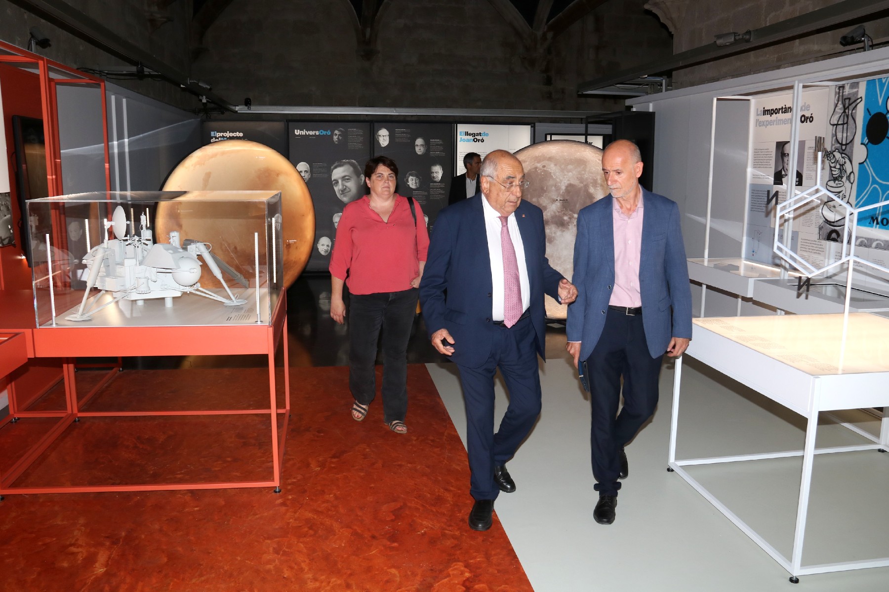 El següent àmbit està relacionat amb l'univers i presenta les mostres lunars que el lleidatà va analitzar durant la seva etapa professional així com una placa commemorativa de la missió Apollo 11. També es relata la seva contribució al programa Viking de la NASA per estudiar el planeta Mart, amb una maqueta d'una de les sondes espacials que s'hi van enviar i dues representacions gegants de Mart i la Lluna. "Hi ha exposat material d'un gran valor històric", ha assegurat el comissari de l'Any Oró.