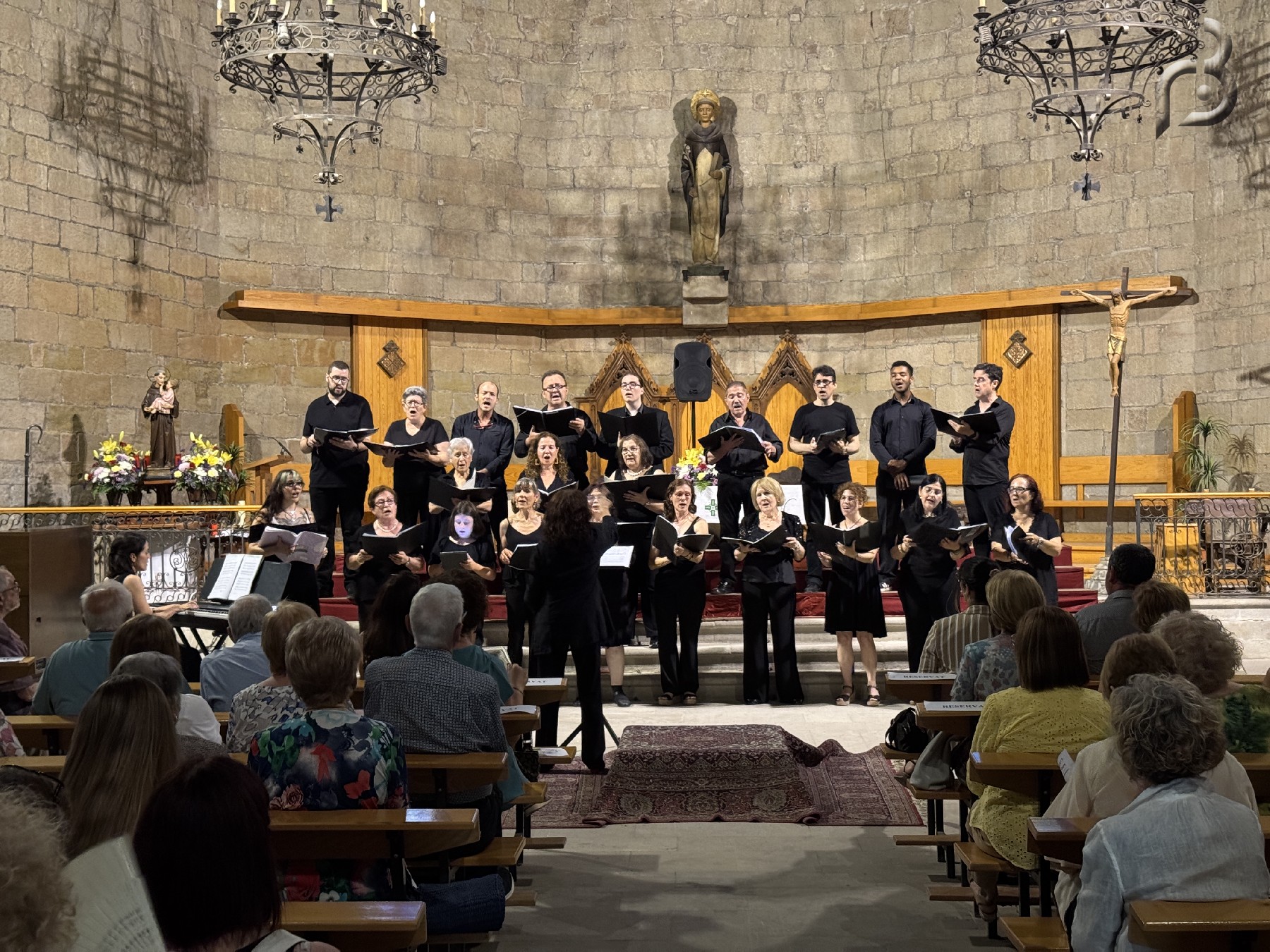 L'església de Sant Domènec ha acollit aquest diumenge al vespre el concert de cloenda del curs de l'Orfeó Balaguerí, en un recital molt especial que ha comptat amb la participació de la Coral de Binèfar. L'acte, presentat per la periodista Mari Pau Huguet, ha reunit més de 70 veus sobre l'escenari i ha ofert al públic un viatge musical per diferents èpoques i estils.