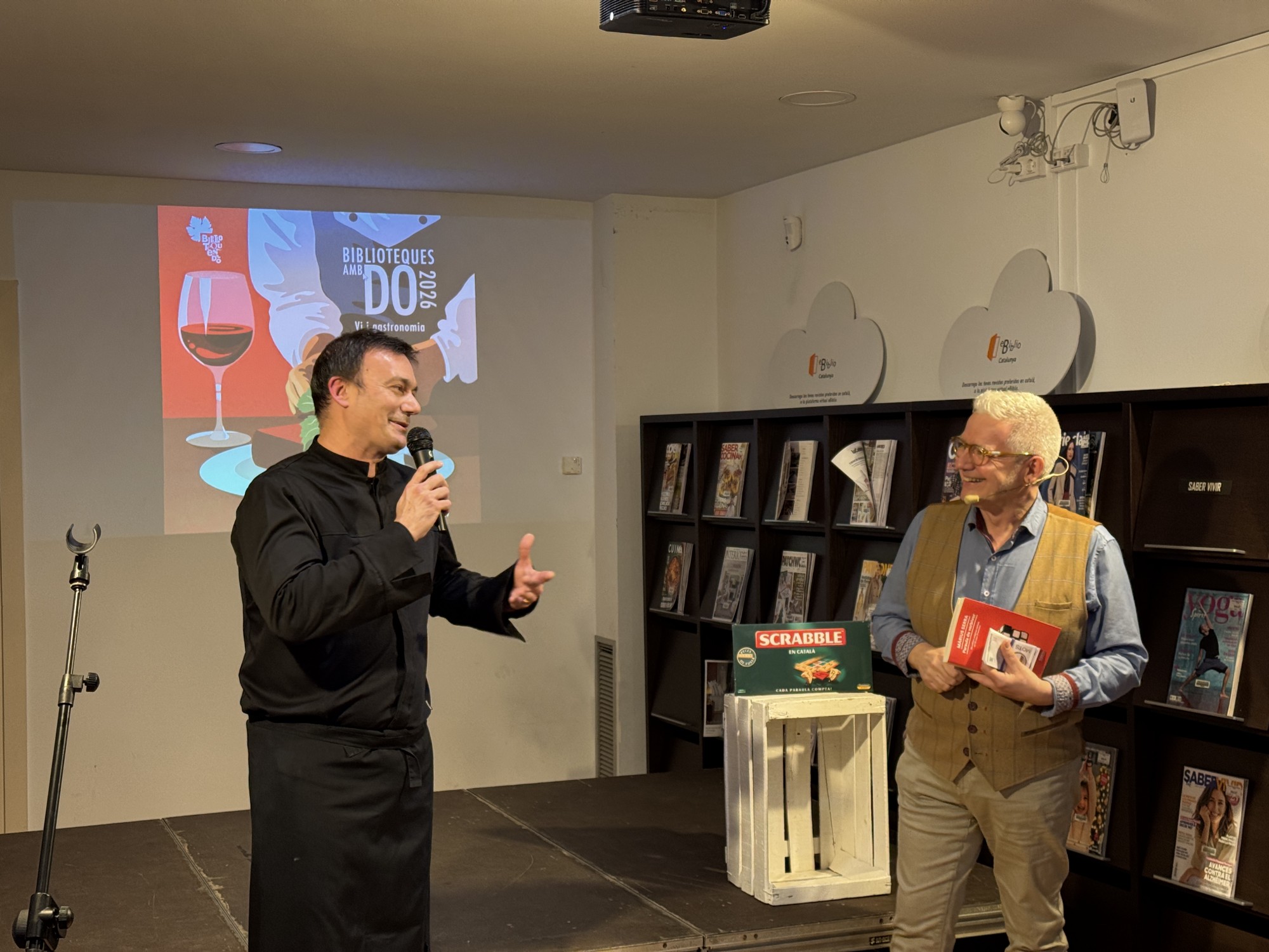 El projecte, que enguany celebra la seva catorzena edició, portant la cultura del vi a les biblioteques públiques de Catalunya amb l’objectiu de reforçar l’arrelament territorial i posar en valor un dels trets distintius del país. L’edició del 2026 està dedicada al vi i la gastronomia, i inclou un ampli ventall d’activitats culturals per a tots els públics, com rutes literàries entre vinyes, recitals poètics, concursos de fotografia i hores del conte. La Biblioteca de Balaguer s’hi suma per onzena vegada i ha programat quatre activitats adreçades a públic adult, totes elles acompanyades d’un tast de vins de la DO Costers del Segre, a càrrec de Francesc Molins, del restaurant Cal Xirricló. En aquesta sessió s’ha pogut tastat un vi blanc, Quim, de Vinya Els Vilars, i un vi negre, Alts del Castell, del Castell del Remei.