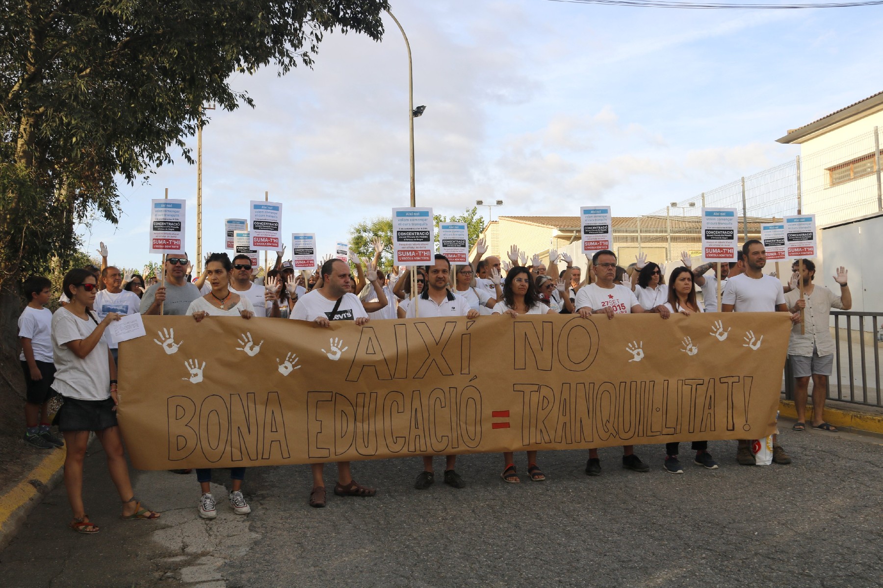 Més d'una cinquantena de persones protesten contra el professor 'conflictiu' assignat en una escola d'Artesa de Segre. Famílies de P3 no han portat els seus fills a classe i volen que es deixi sense efecte el nomenament de docent