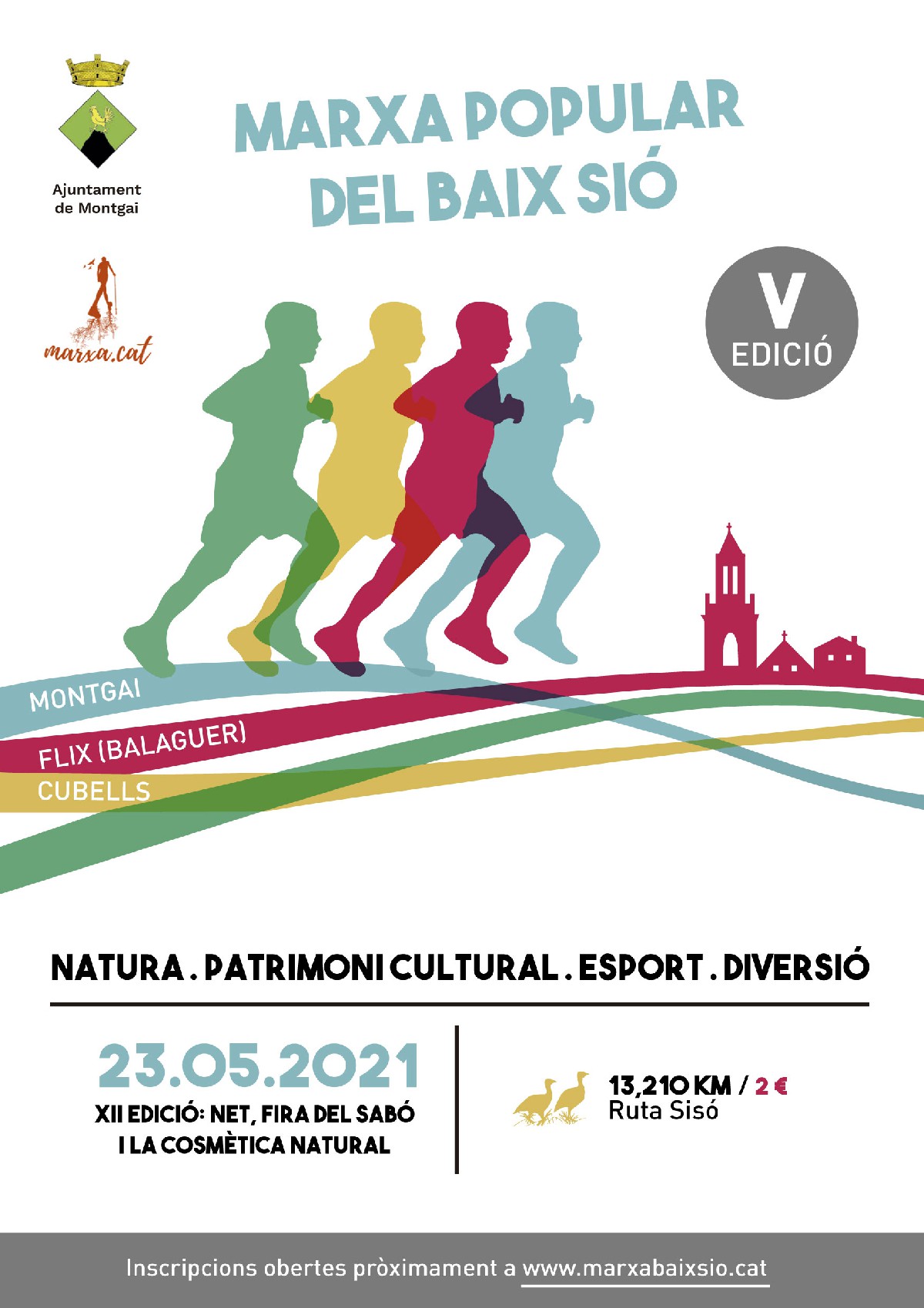 En aquesta edició de la Marxa, es farà un recorregut de 13,210 kms i passarà per tres municipis, Montgai, Cubells i Flix (Balaguer). Durant aquest recorregut es podrà observar la recent recuperada Peixera del riu Sió d'uns 80 metres de llargada, així com la Font Amarga i el Mirador del Baix Sió, amb uns paisatges de plena primavera del secans que permetran observar la rica varietat d'ocells esteparis i l'abundant flora existent a la zona.