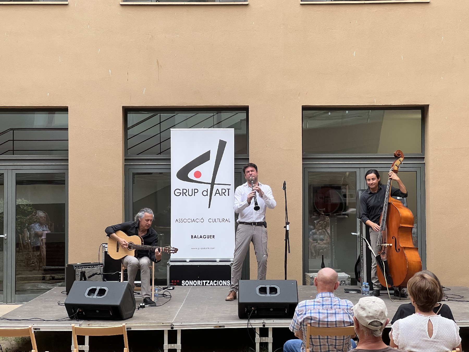 La formació Cat Klezmer Trio està liderada per Xavi Pendon, que en aquesta ocasió ha interpretat el clarinet, i s'ha acompanyat del guitarrista Xavi Torras i del Joni Aldunaten al contrabaix. Segons ha explicat la Montserrat Cots de l'entitat organitzadora Associació Grpu d'Art 4, el concert ha estat possible gràcies al fet que estan adherits a les Joventuts Musicals de Catalunya. Cots ha agraït al públic la seua assistència, i ha afegit que estaven molt contens d'haver-se pogut sumar a la capitalitat de la sardana de Balaguer 2022 programant aquest original concert.