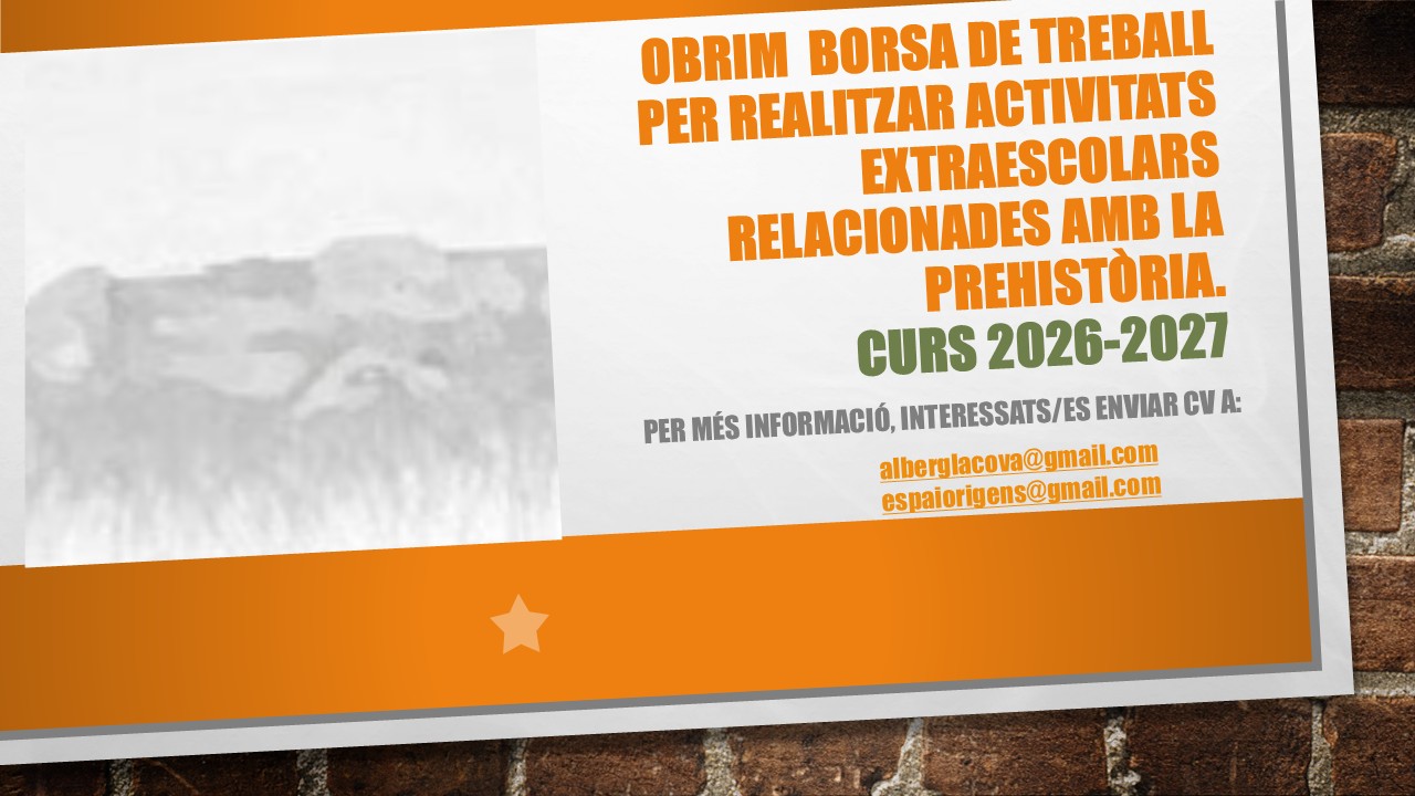 Paral·lelament, des de l’organització també s’ha obert una convocatòria per ampliar la borsa de monitors de cara al curs 2026-2027, adreçada a persones interessades en el món del lleure i la divulgació de la prehistòria. En aquest cas, els aspirants poden enviar el seu currículum al correu electrònic