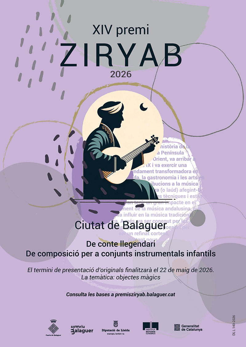 Ja està obert el termini per presentar obres a la XIV edició del Premi Ziryab Ciutat de Balaguer, un certamen que reconeix i promou la creació literària i musical amb temàtiques vinculades al patrimoni històric i cultural de la ciutat i de les terres de Ponent.