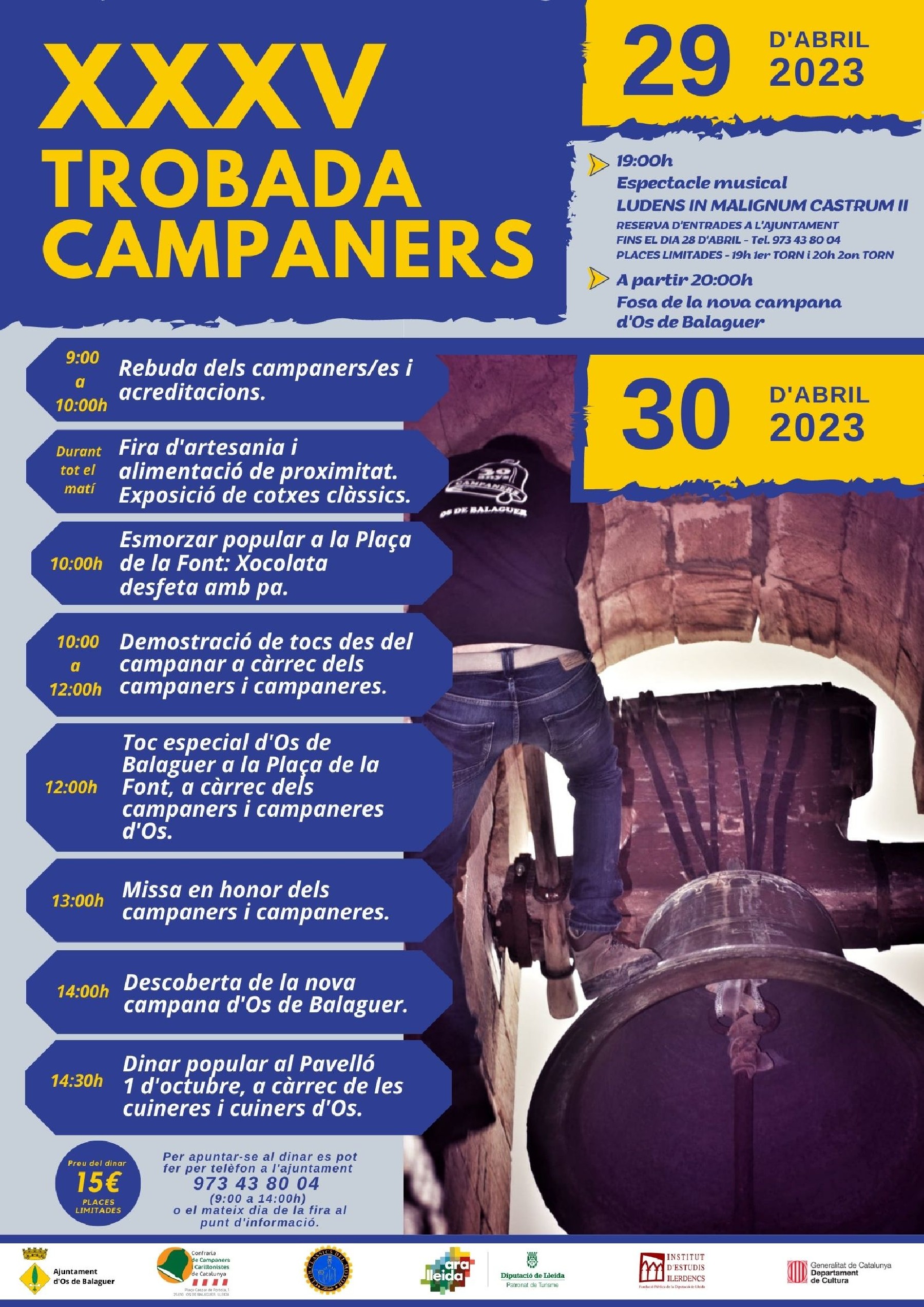 Com cada any, des de ja fa 35 anys, Os de Balaguer prepara la festa dels campaners, que com és costum celebren l'últim cap de setmana d'abril. Des de l'Ajuntament expressen la seva il·lusió d'organitzar aquesta festa ja tan consolidada al territori i esperen la participació de campaners i campaneres d'arreu.