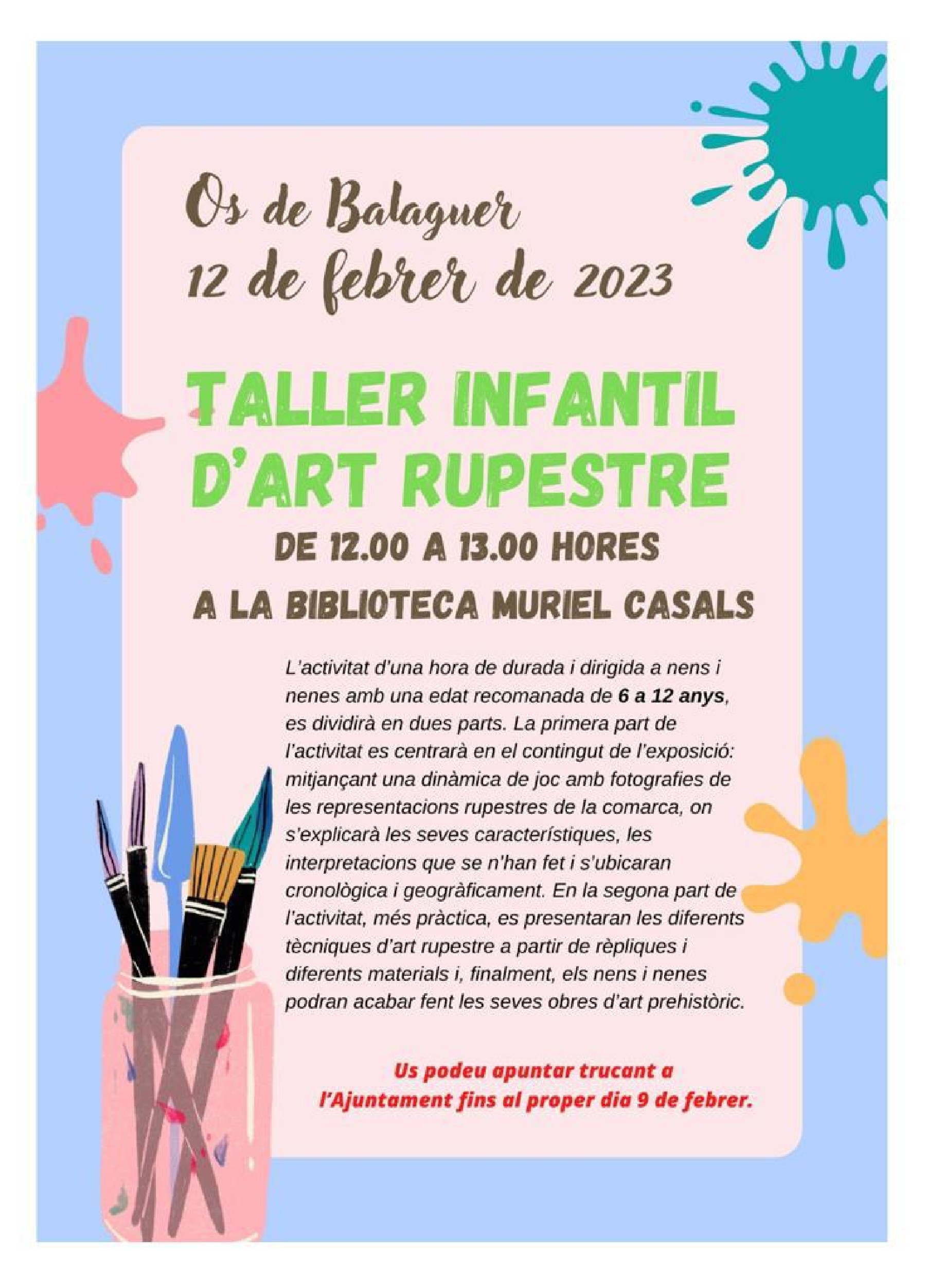 A partir de les 12 i fins a la 1 es realitzarà a la mateixa biblioteca un taller d'art rupestre.