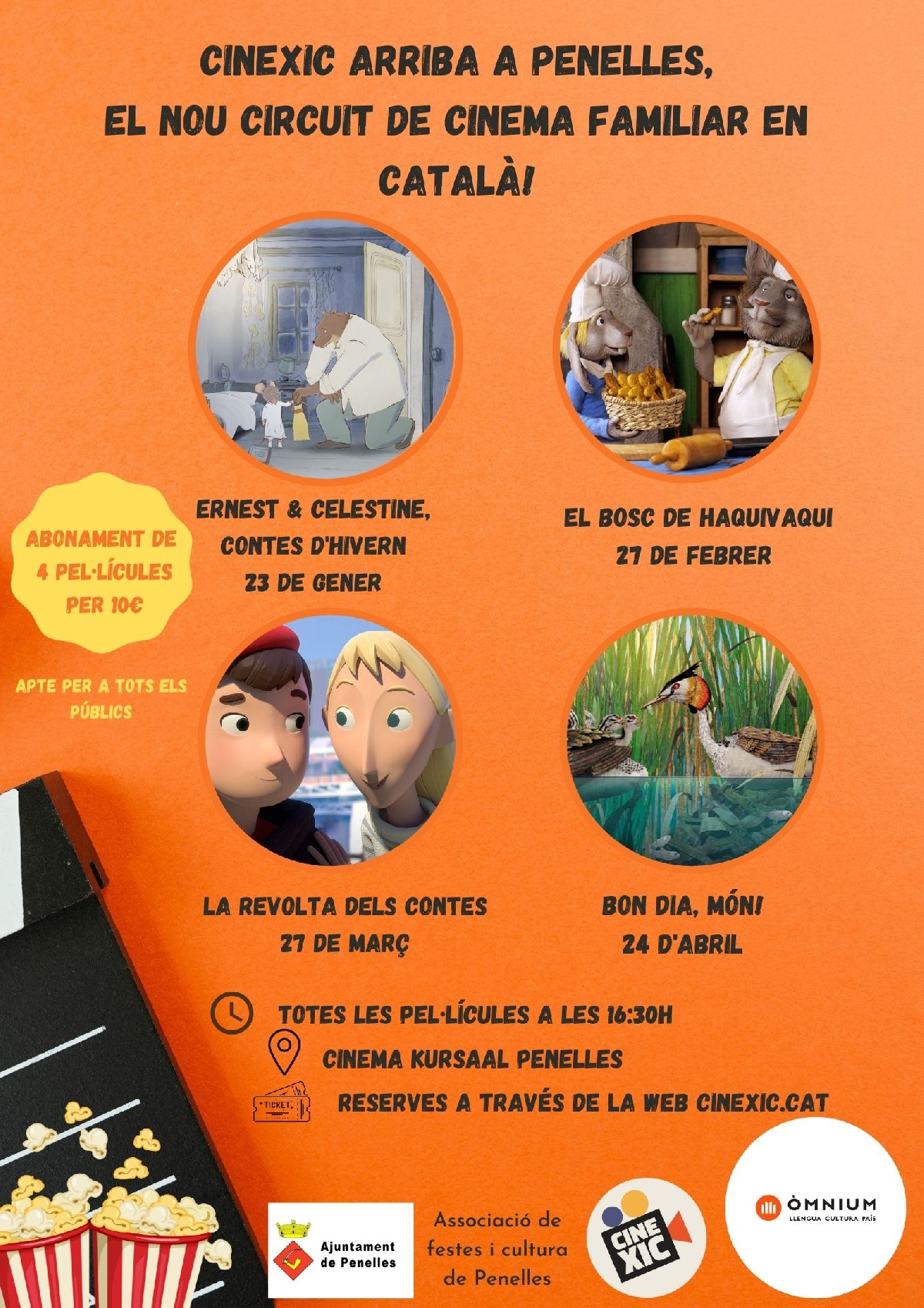 La resta de programació de pel·lícules Cinexic al cinema Kursaal de Penelles serà: diumenge 27 de febrer, 'El bosc de Haquivaqui'; diumenge 27 de març, 'La revolta dels contes'; i diumenge 24 d'abril, 'Bon dia, món!'.