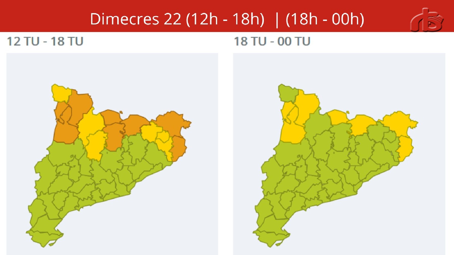 A causa de la precipitació important de neu que es preveu fins dimecres al migdia al vessant nord del Pirineu, hi haurà la possibilitat del fenomen del torb. Així mateix, es preveu fort onatge (maregassa) a les comarques de l'Alt i Baix Empordà, sobretot a partir d'aquesta dimarts a la nit i fins dimecres. La direcció de l'onatge serà de nord-est i hi haurà mar de fons.