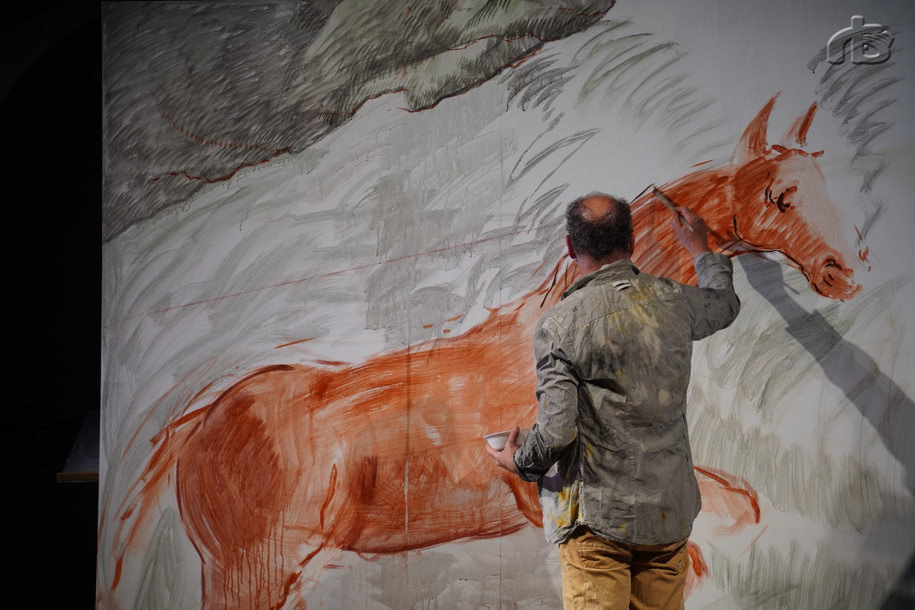Realització en directe d'una pintura mural al fresc, a càrrec de Josep Minguell i Affresco Teatre
