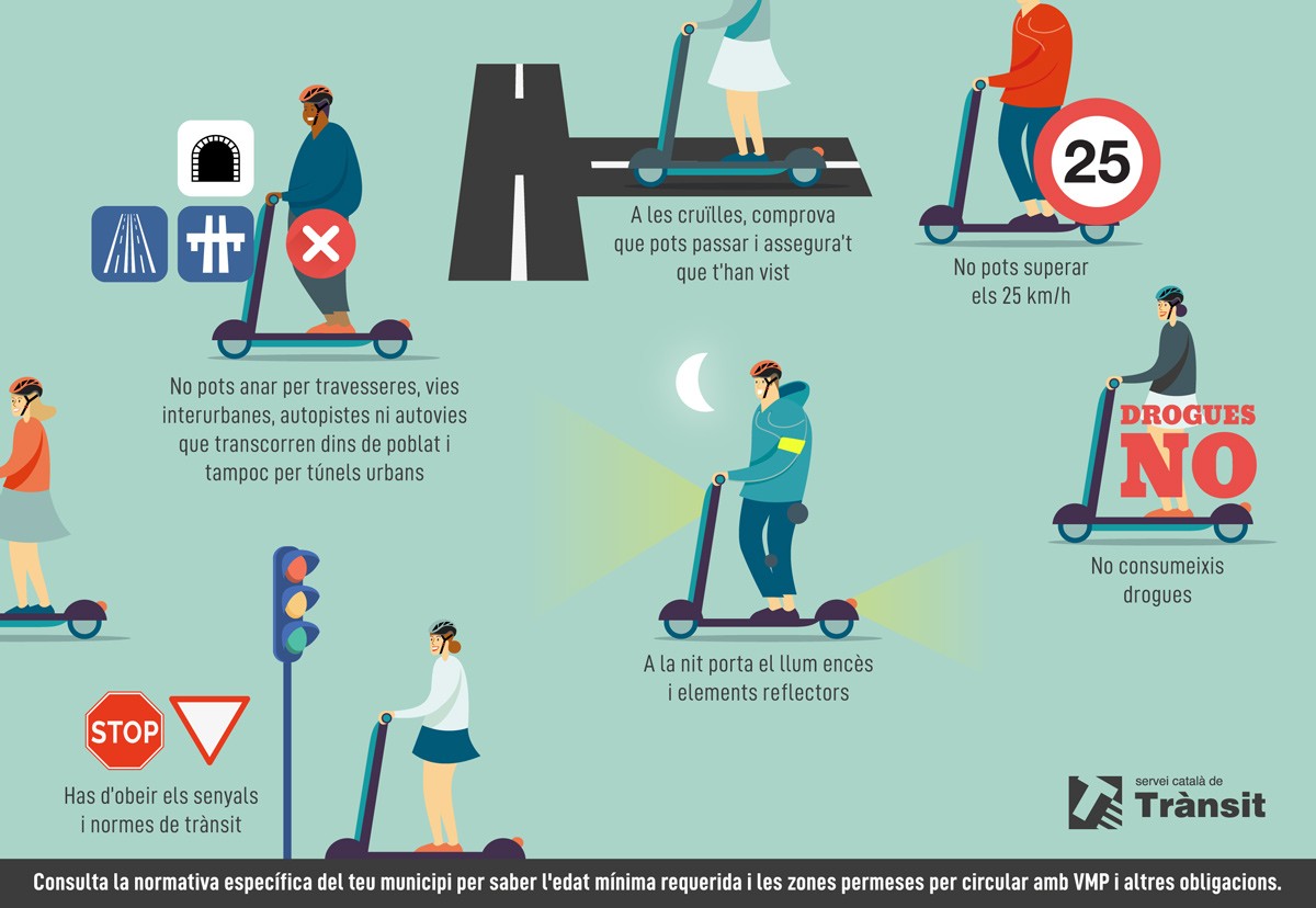 Amb l'objectiu de frenar les infraccions i les actituds incíviques que poden causar l'ús d'aquests tipus de vehicles i davant el cert desconeixement que s'ha detectat per part dels usuaris respecte al que poden fer i al que no quan els utilitzen, els Mossos i les Policies Locals de Catalunya han incorporat en les sessions formatives que fan a les escoles i instituts un nou material divulgatiu per conscienciar els alumnes sobre la nova normativa que des del passat 2 de gener regula la circulació dels VMP. En concret, s'han editat 15.000 fulletons informatius que porten per títol "Saps que si portes un patinet elèctric condueixes un vehicle?" i en els quals es detallen les normes que s'han de tenir en compte quan se circula amb patinet elèctric.