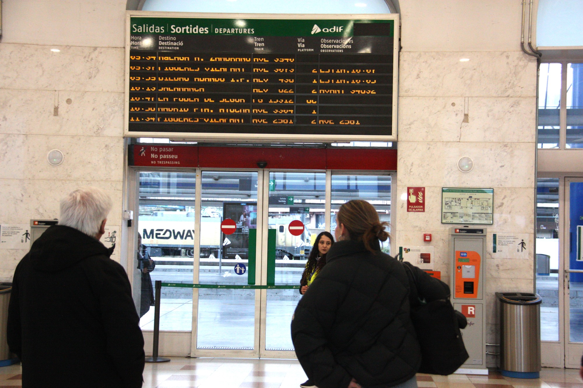 A l'estació de tren de Lleida, bona part dels usuaris de la línia RL3 i RL4 que passa per Cervera han buscat pel seu compte alternatives, i només uns pocs que no s'han assabentat de l'afectació han anat a l'estació, on dues treballadores els han informat de la situació.