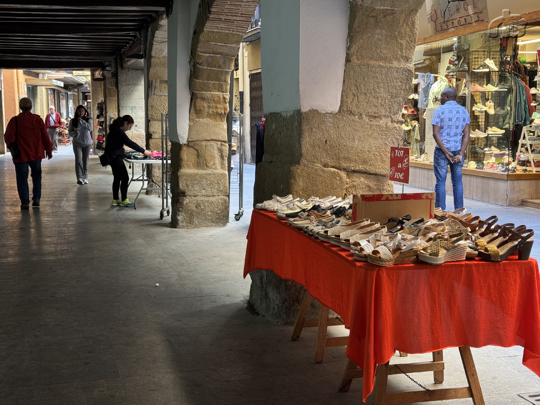 Cristina Bonet, membre de l'Associació de Comerciants del Centre Històric, explica que tot i que aquest primer dia el temps no acompanya i fa fresca, la resposta dels clients està sent bona, i de cara al dimecres vinent esperen poder ampliar més encara l'oferta de comerços amb parades al carrer. Bonet diu que al mercat s'hi pot trobar des de roba a complements, sabates, menjar i estris per la llar o ferreteria.