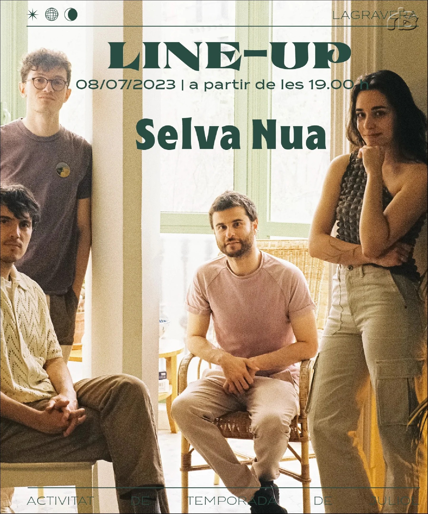 Pel que fa al programa musical, la vetllada s'obrirà amb Segon Passeig. Tot seguit, pujarà a l'escenari Carlota Flâneur; i tancarà la roda de concerts la formació Selva Nua. L'acompanyament musical de Lagravera Fest finalitzarà amb una sessió amb la dj Eli Kapowski.