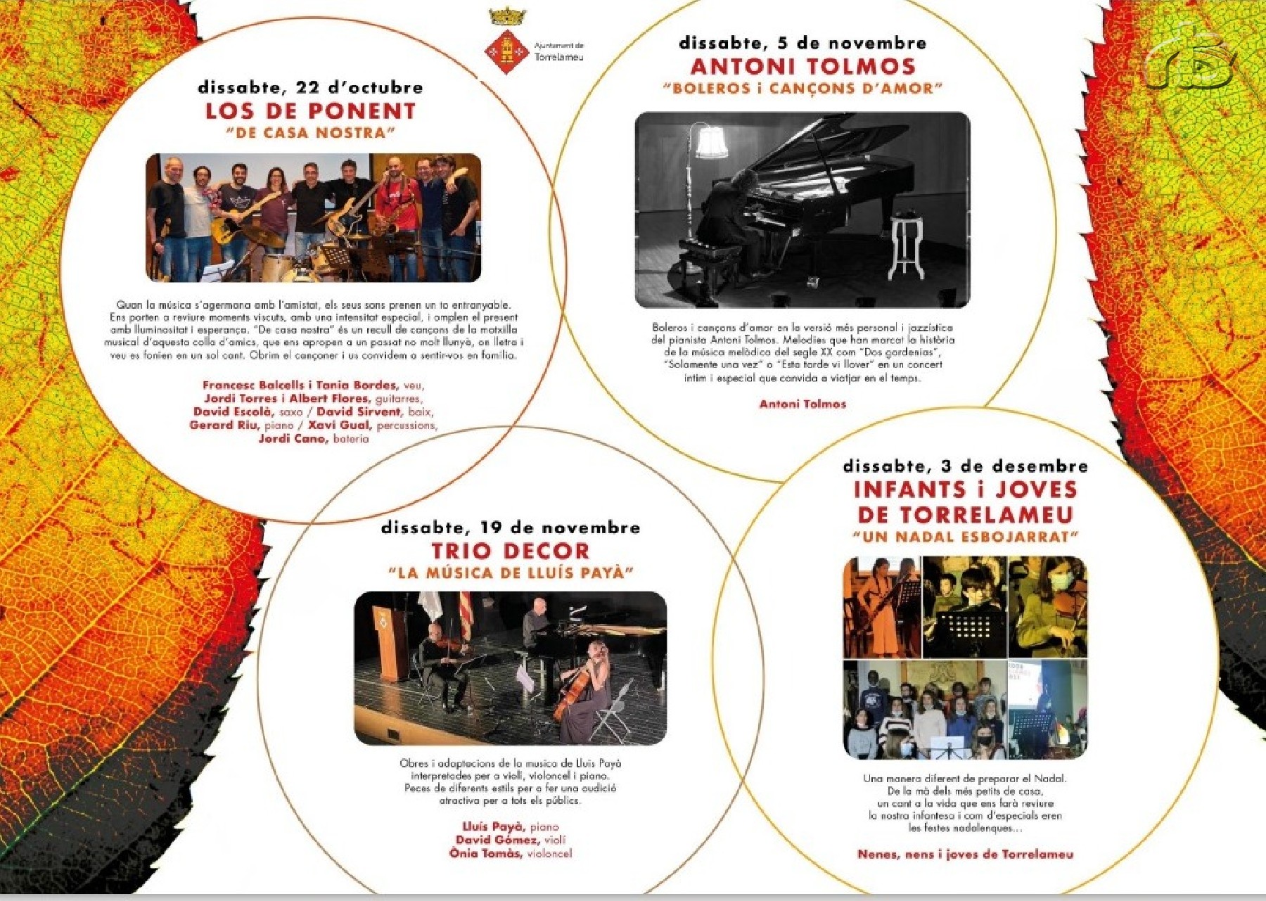 Dissabte, 5 de novembre: Antoni Tolmos, amb el concert 'Boleros i cançons d'amor'. Un repàs a melodies que han marcat la història del segle XX.