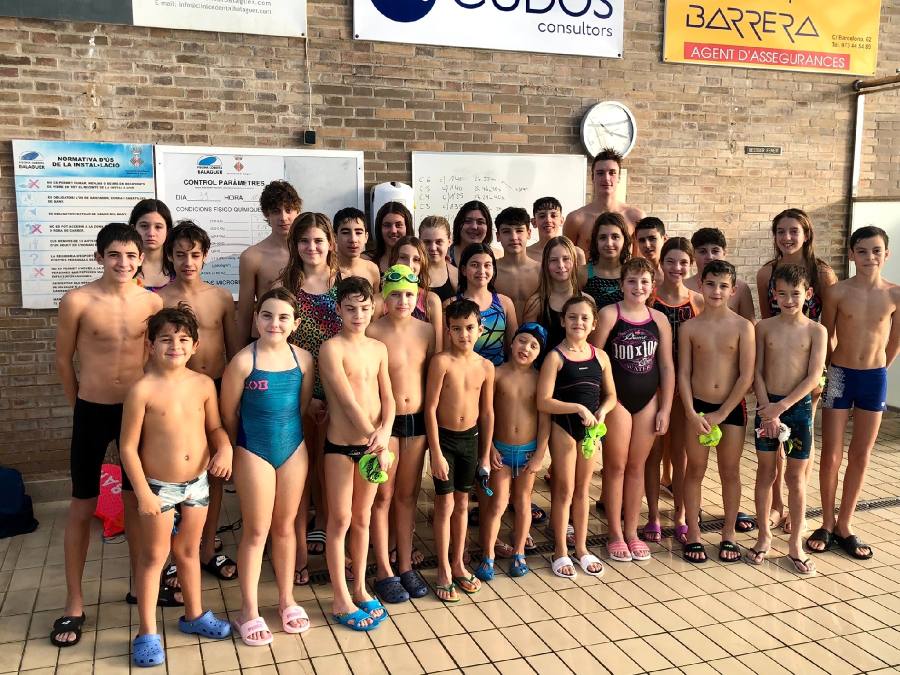Una 30a de nedadors on els més grans han realitzat 100 sèries de 100 metres, els alevins petits entre 50 i 70 sèries i els més petits del club 100 series de 25 metres.