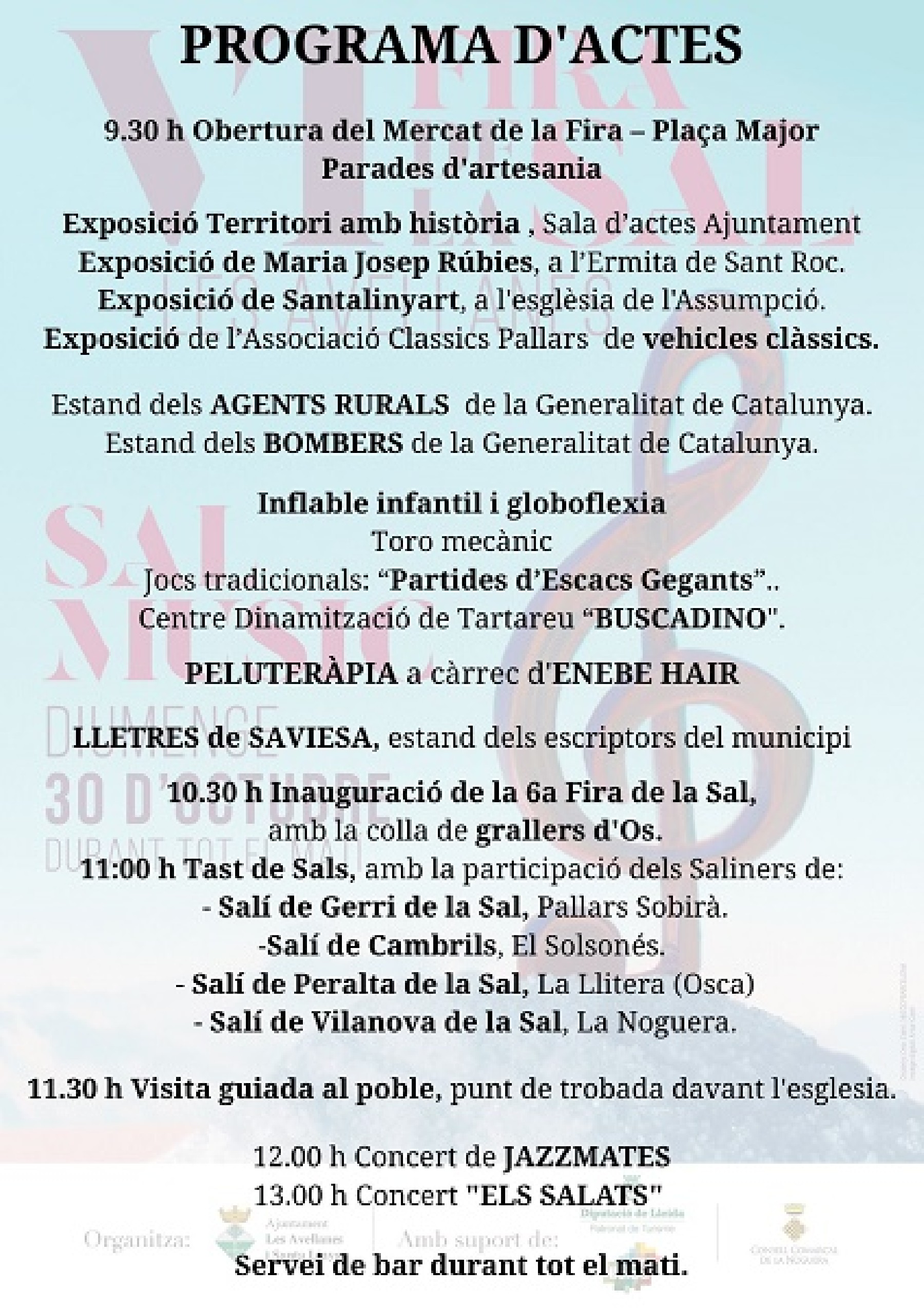 Tres salines de les comarques de Lleida i una d'Osca, a la 6a Fira de la Sal de les Avellanes i Santa Linya, Sal Music. Se celebrarà aquest diumenge 30 d'octubre amb activitats infantils, culturals, gastronòmiques i lúdiques