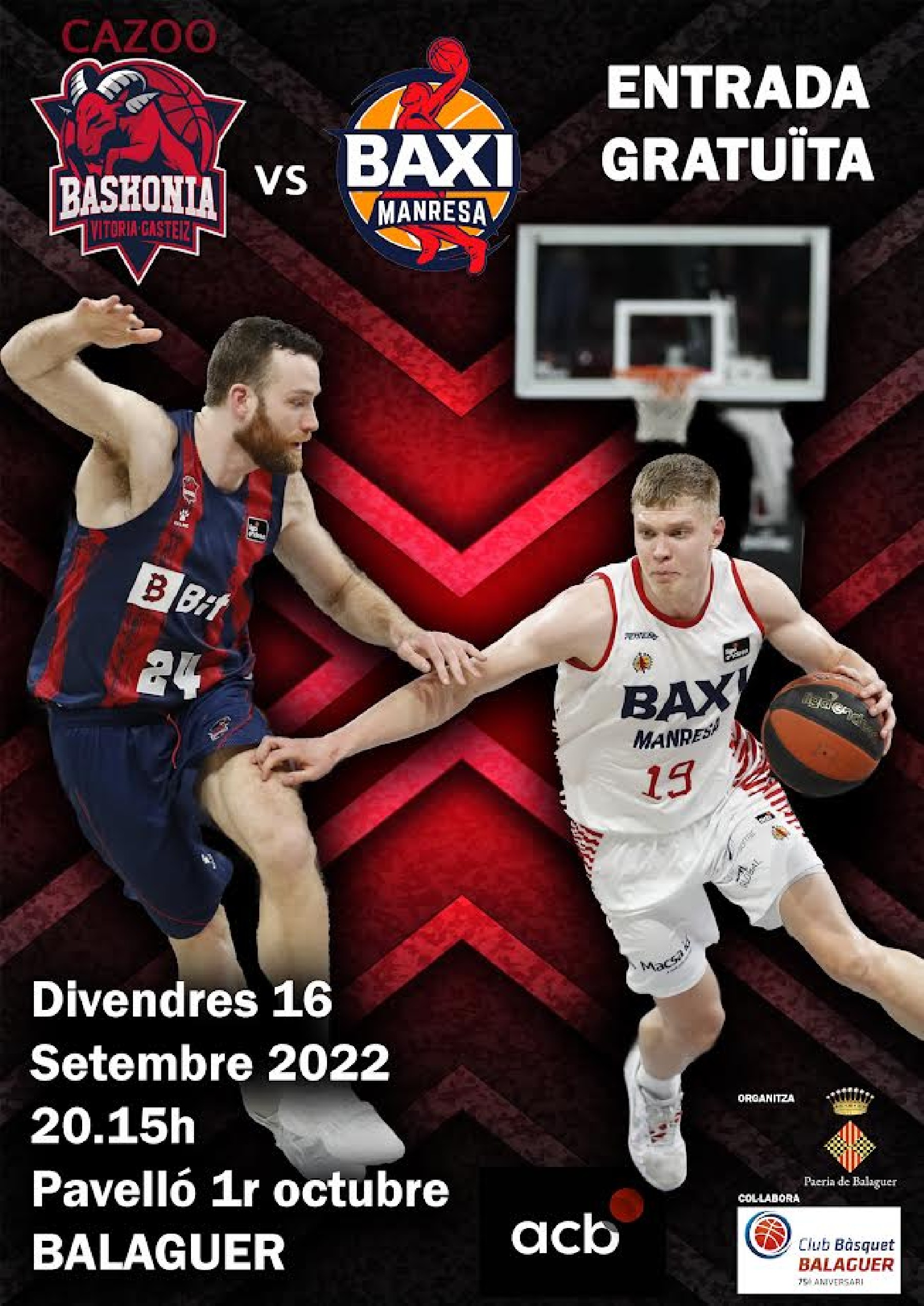 Un any més, Balaguer amb un partit del més alt nivell: Baxi Manresa – Baskonia de Vitòria. Es jugarà a la pista del pavelló 1r d'Octubre el divendres 16 de setembre. Serà amb entrada gratuïta