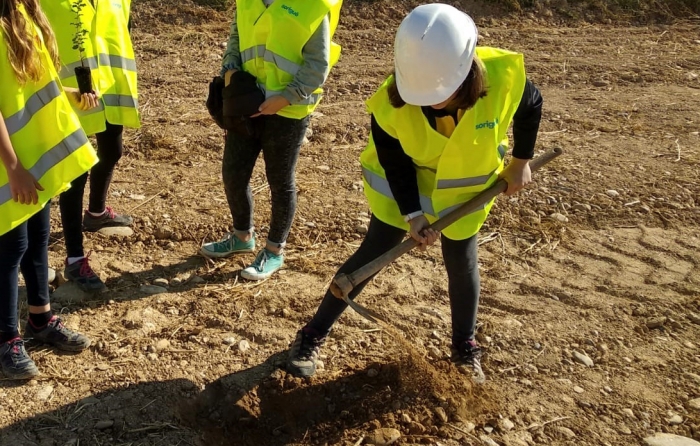 Una vintena de nens i nenes de 6è de l'escola La Noguera, de Balaguer, han visitat la gravera de la Plana del Corb per contribuir a la plantació d'arbres que s'està fent a una de les zones explotades en actual fase de restauració