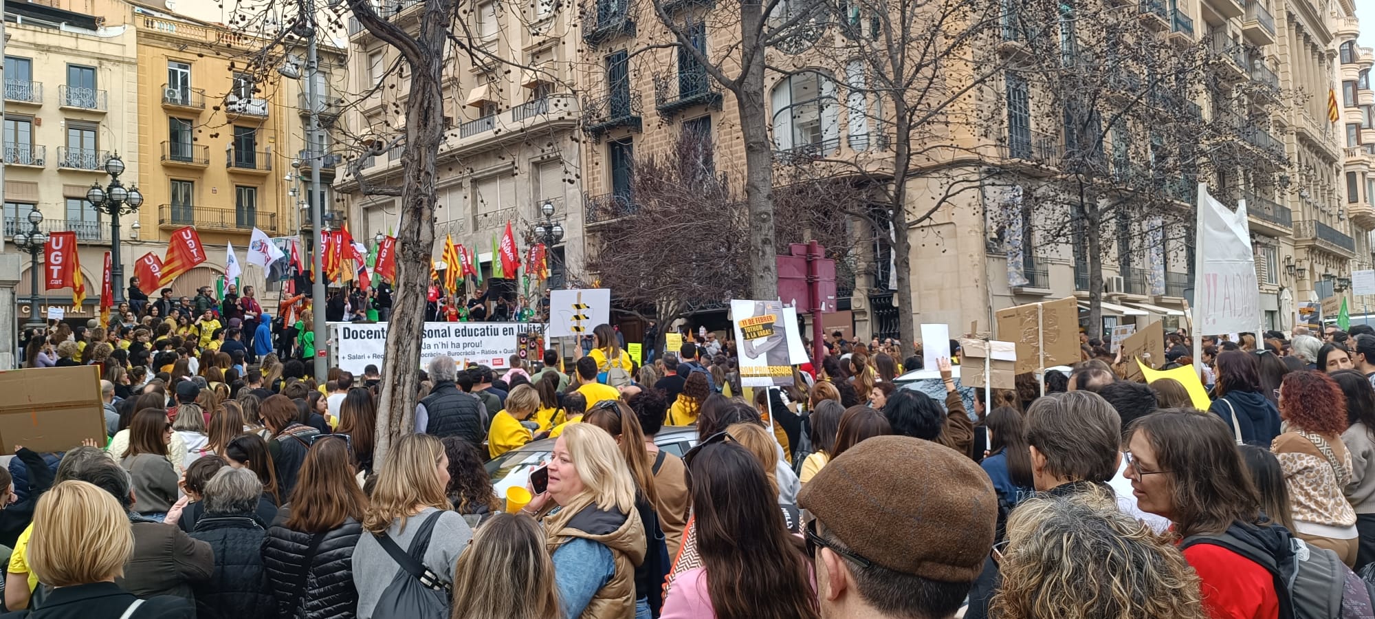 Uns 5.000 docents es manifesten a Lleida per reclamar millores laborals i l'augment dels salaris. USTEC xifra en un 70% el seguiment de la vaga a Ponent i denunciarà dos intents d'atropellament a manifestants