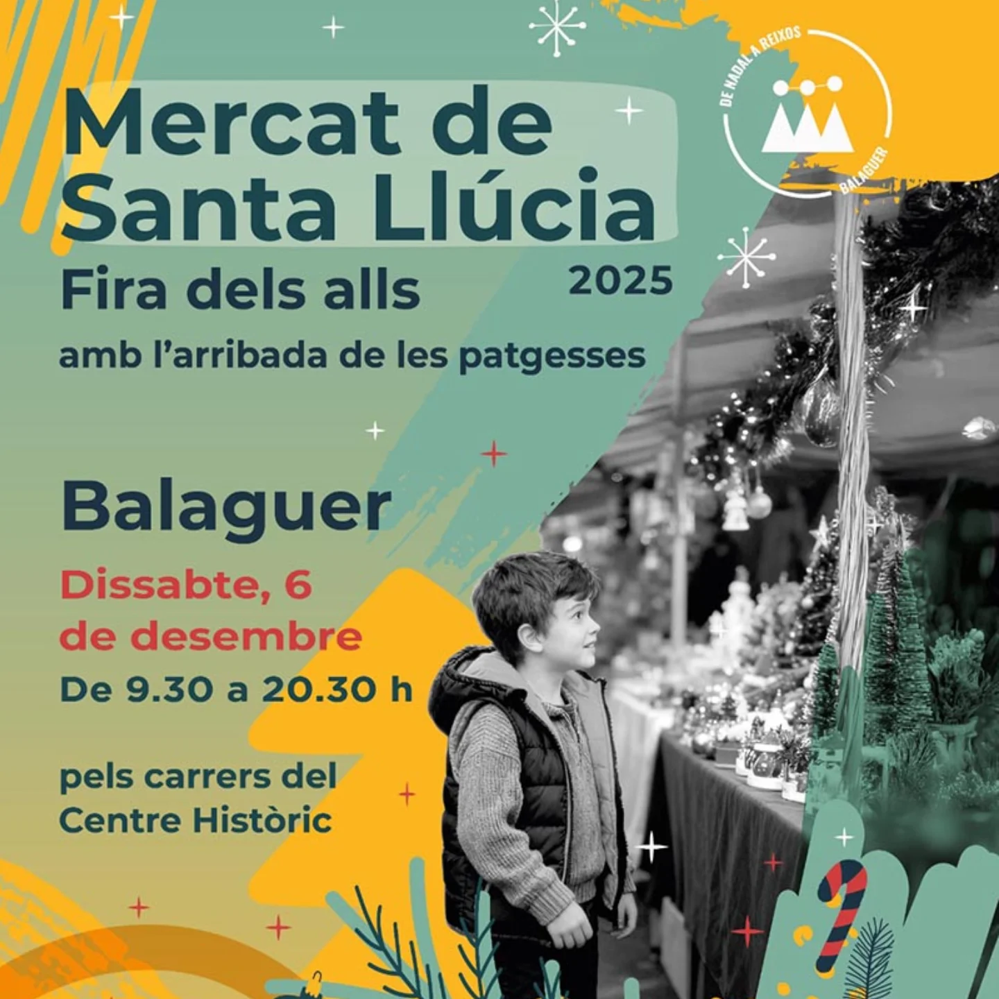 El dissabte 6 de desembre, Balaguer acollirà la seva tradicional Fira de Santa Llúcia, coneguda també com la Fira dels Alls, considerada una de les més antigues de Catalunya i documentada abans de 1424.