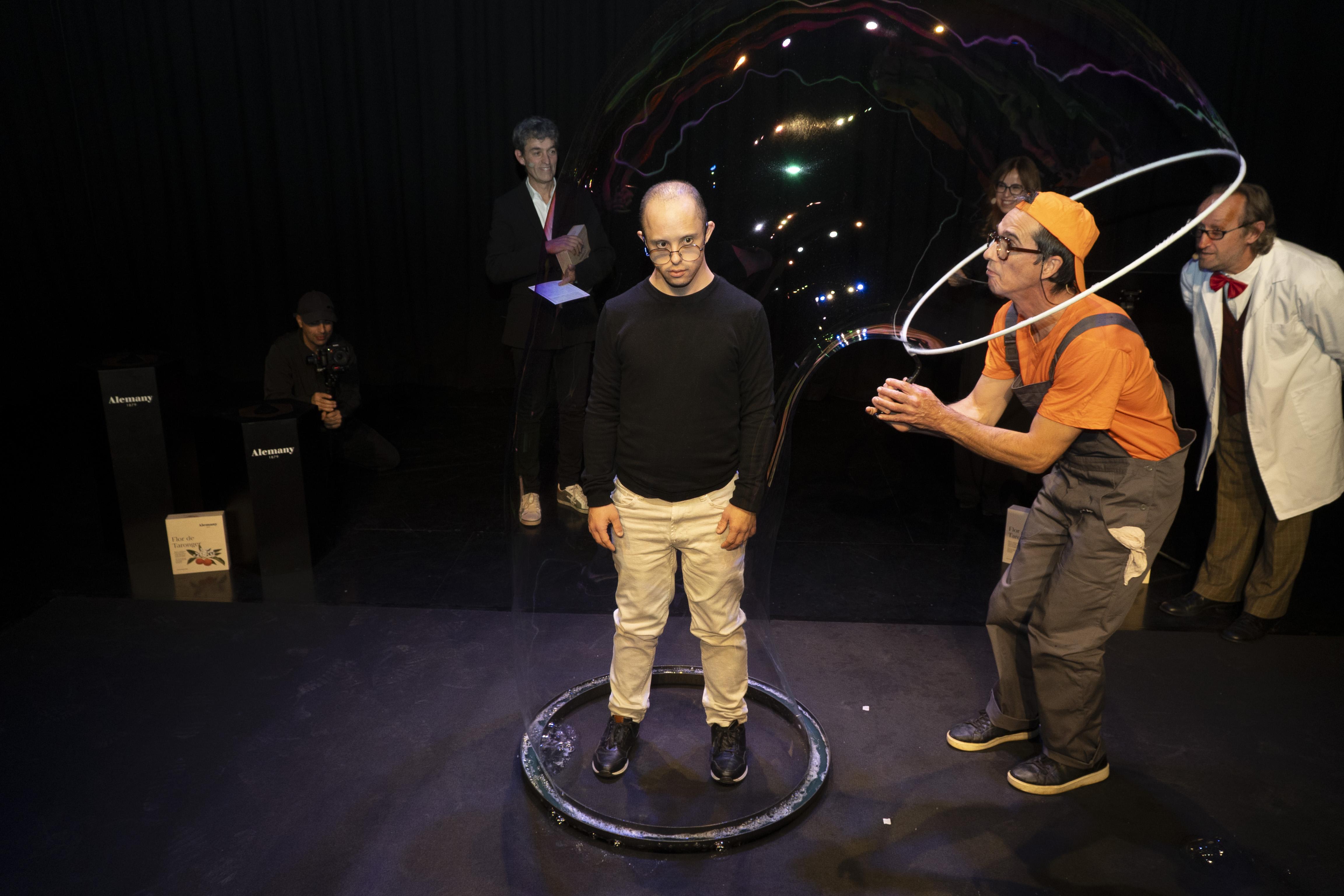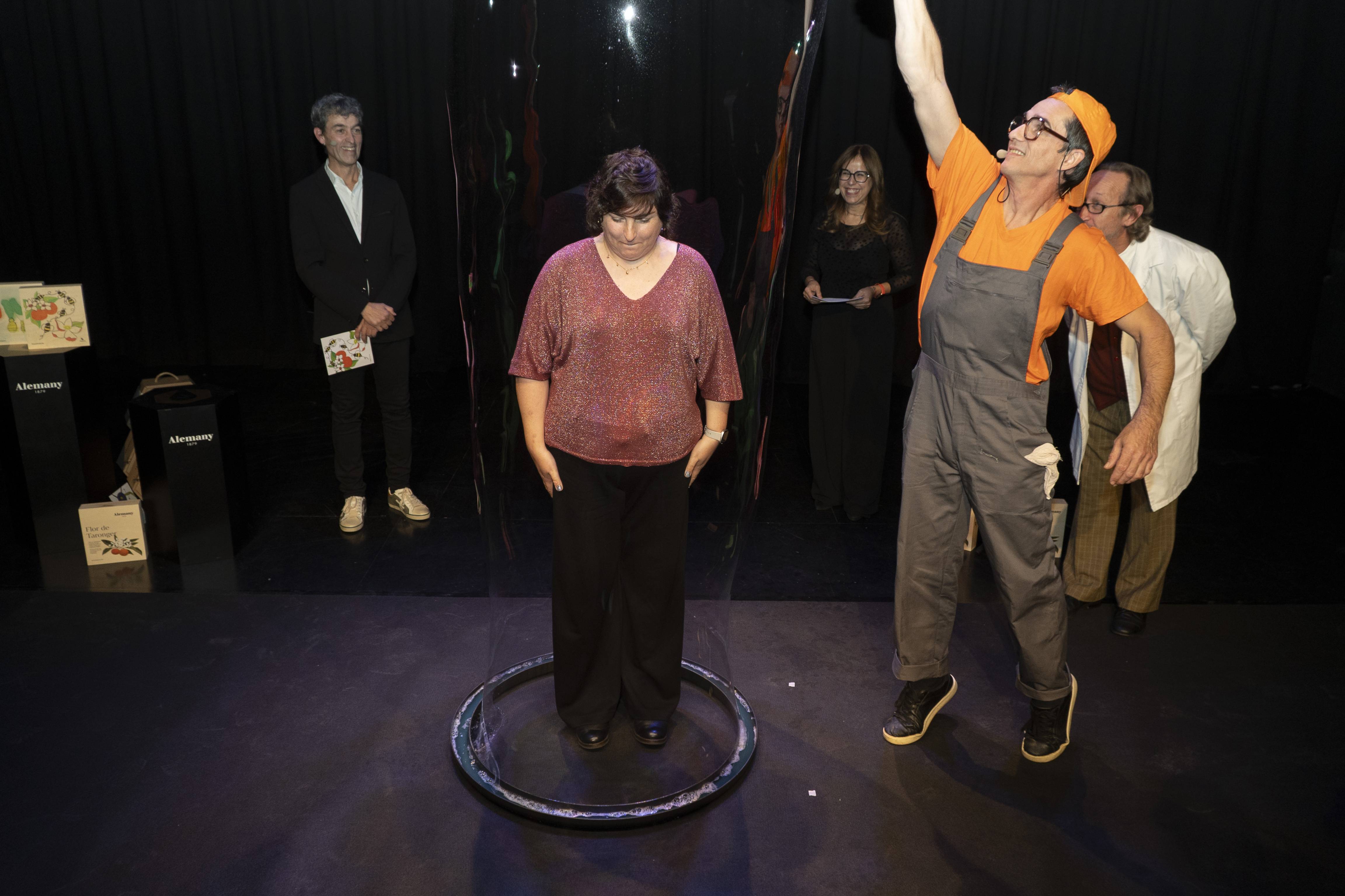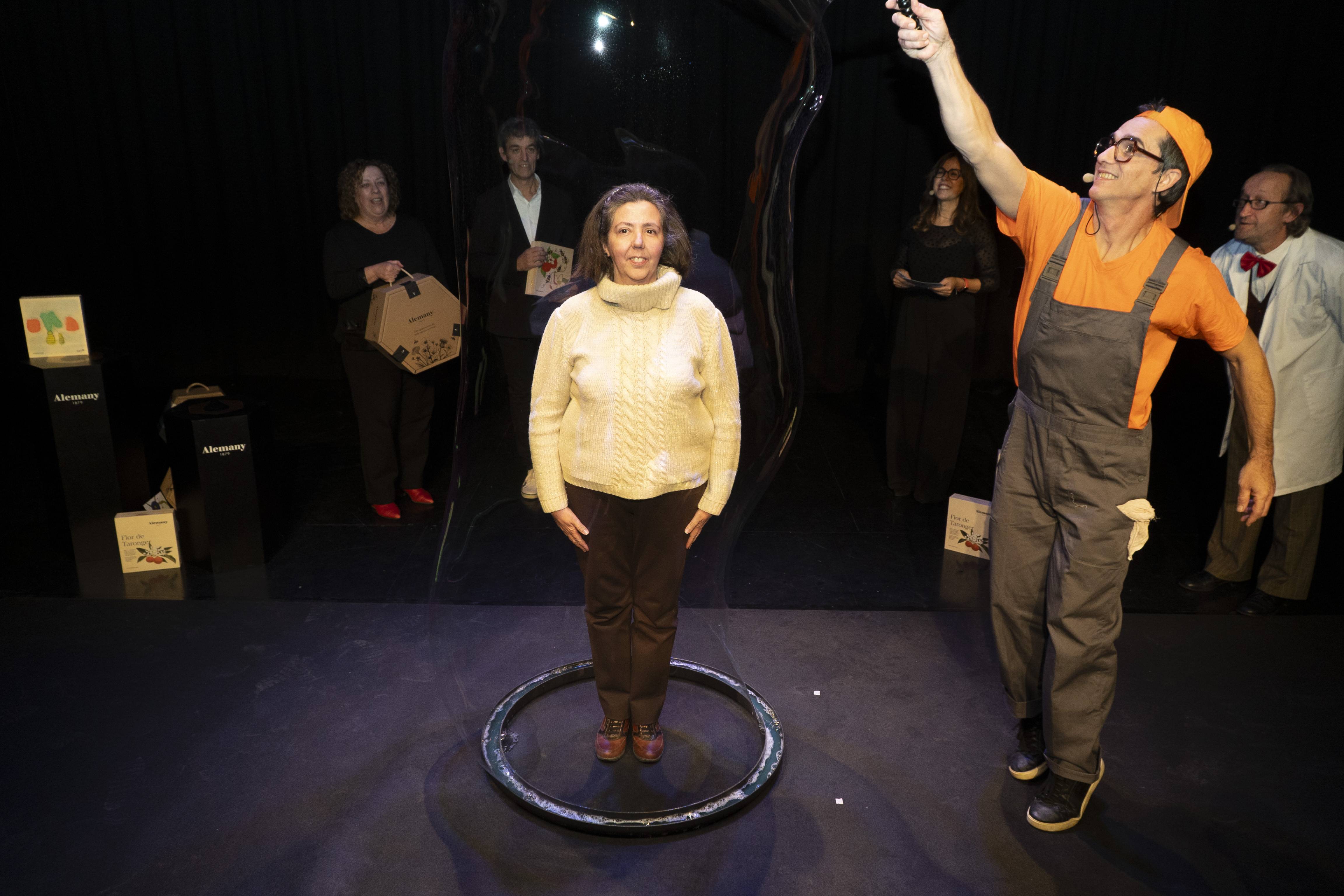 Alemany ha celebrat aquest dijous al vespre la tradicional Torronada, l’acte que dona el tret de sortida a la campanya de Nadal i que, un any més, ha reconegut el talent dels artistes que il·lustren les caixes de la col·lecció “Art i Torró”. En aquesta edició, l’esdeveniment s'ha traslladat a la Sala Mercantil de Balaguer, en una gala que ha tingut un fort component visual de la mà de la Cia. Enlaire, encarregada d’omplir l’espai de llum i bombolles en un espectacle immersiu. La periodista Mariví Chacón ha conduït l’acte, que ha començat amb un fragment de l’espectacle “Bombollesència”, una peça visual i poètica que ha donat pas al moment central de la vetllada, el lliurament dels premis.