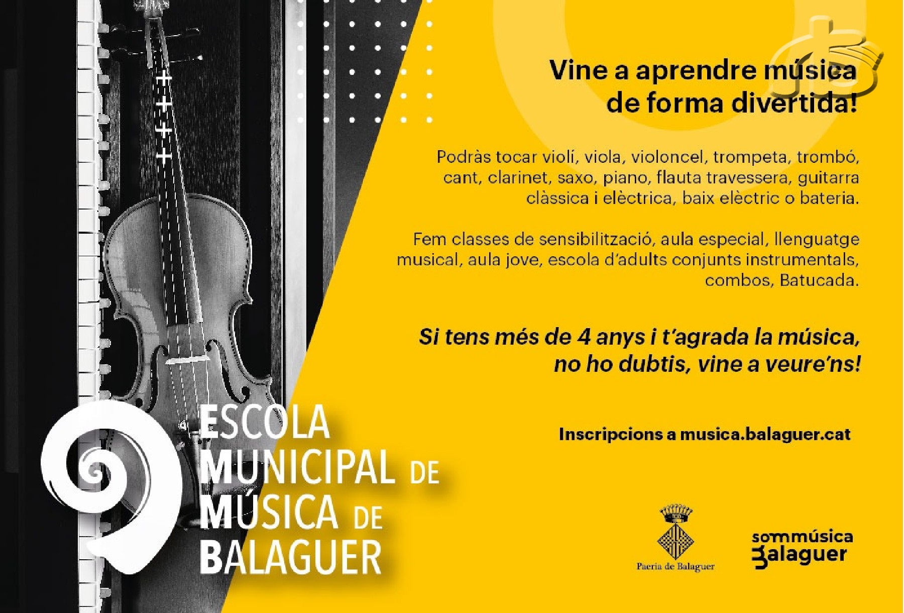 Aquest dilluns comença el període de preinscripció a l'Escola Municipal de Música d'alumnes que ja cursen al centre i de nous alumnes. Es pot fer de forma online des d'avui i fins al 6 de juny i també presencial fins al 3 de juny concertant cita prèvia
