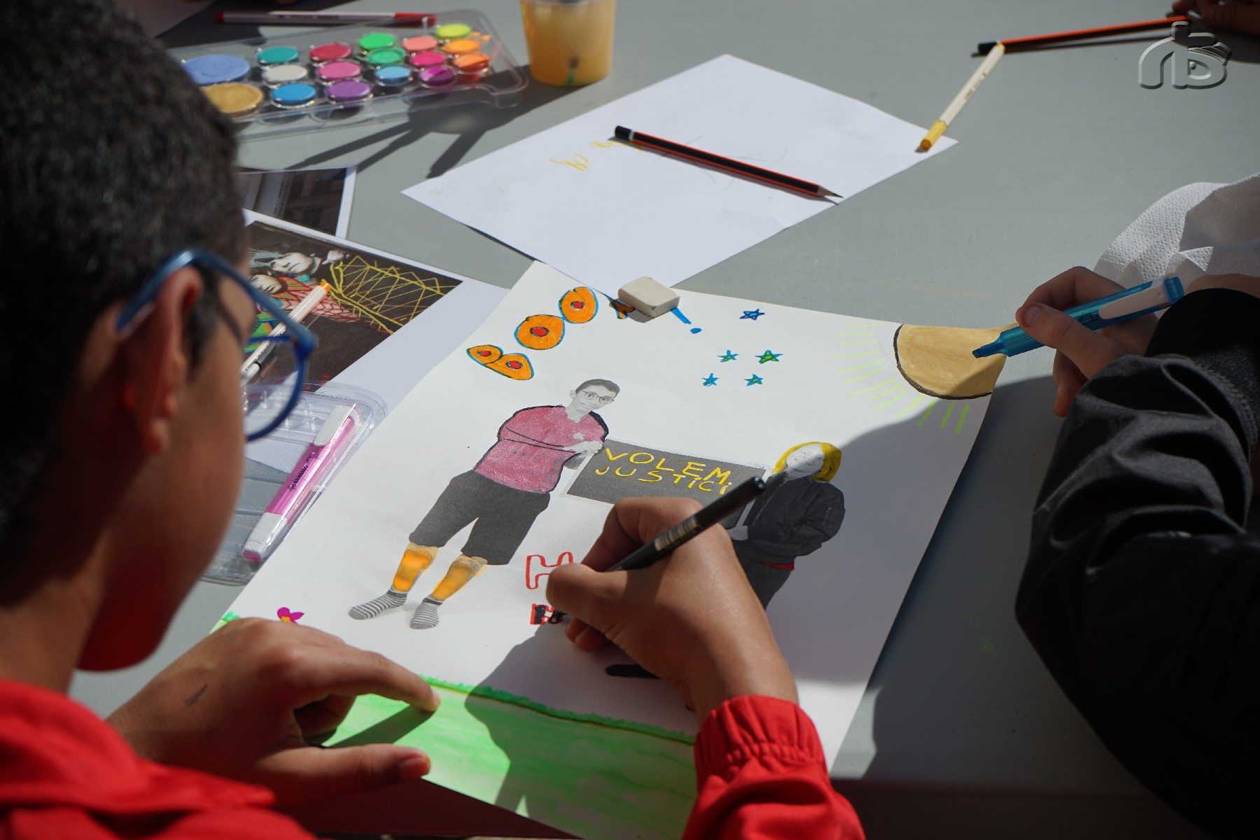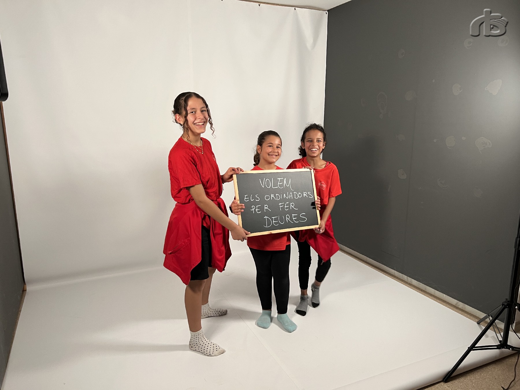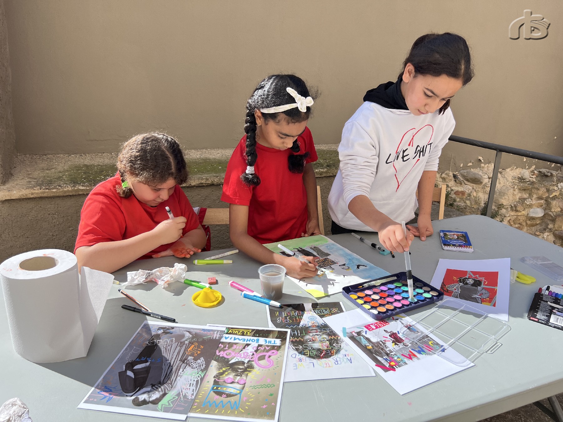 Vanessa Duch, responsable del taller per als escolars, explica que l'objectiu és deixar un missatge per al futur, com si es tractés d'una càpsula del temps. Ho fan amb una fotografia en blanc i negre d'ells mateixos amb un missatge en una pissarra, que després poden acolorir.