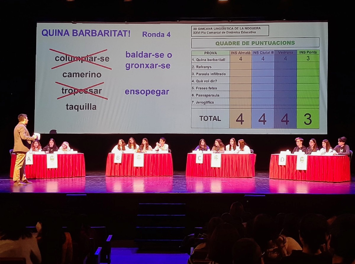 Aquest dimecres ha tingut lloc al Teatre Municipal de Balaguer la XII GIMCANA LINGÜÍSTICA que ha comptat amb la participació de diferents centres de la comarca. I 'Institut Ponts ha estat el guanyador d'aquesta edició