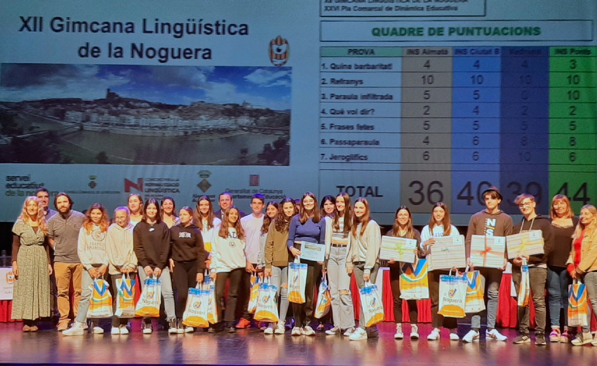 El Teatre Municipal de Balaguer ha estat escenari aquest dimecres 4 de maig de la final de la XII Gimcana Lingüística de la Noguera. En aquesta nova edició han participat els alumnes de 2n d'ESO de l'Institut d'Almatà, el Col·legi Vedruna de Balaguer, l'Institut Ciutat de Balaguer i l'Institut de Ponts. La Gimcana ha estat conduïda per Carles Gomez, cantant dels Lexus, i comptava amb un concurs de diverses proves sobre llengua catalana