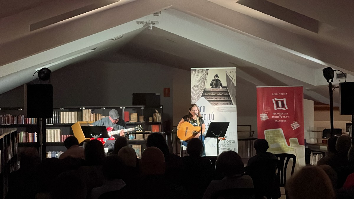 Aquest divendres la Biblioteca Margarida de Montferrat ha estat escenari de l'espectacle 'Sastres insomnes' a càrrec de Meritxell Gené, en homenatge a Joan Barceló