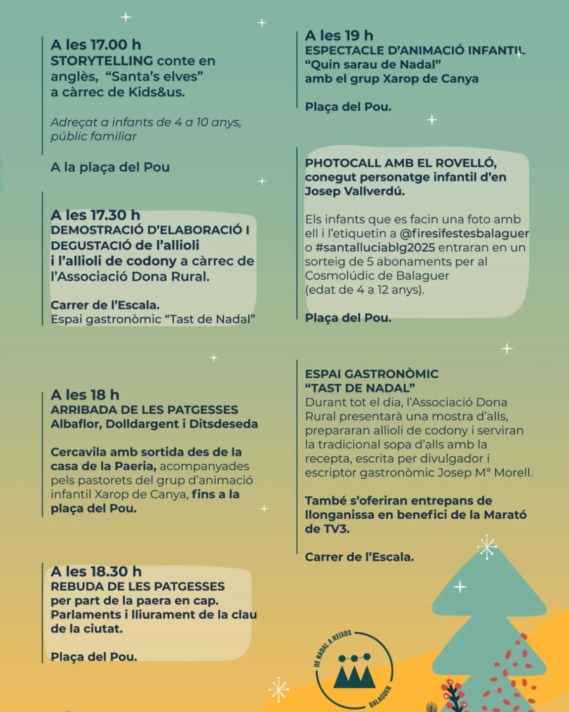 Durant tota la jornada, a la plaça del Pou hi haurà un photocall amb en Rovelló. Les fotografies etiquetades amb @firesifestesbalaguer o #santalluciablg2025 entraran en el sorteig de cinc abonaments per al Cosmolúdic.