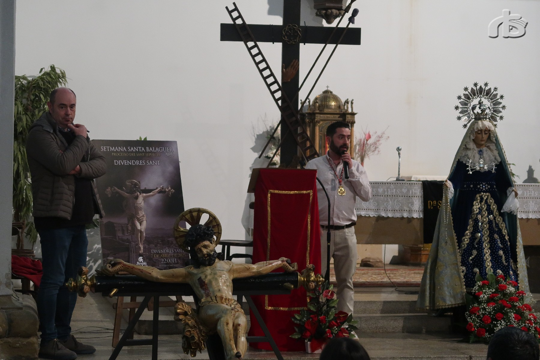 Durant l'acte es va aprofitar per presentar el cartell anunciador 2023 i el beneir el nou mantell de la Mare de Déu dels Dolors. També es va anunciar que el 2024 Balaguer acollirà el congrés català de confraries i germandats i convertirà la capital de la Noguera en capital de la Setmana Santa catalana.
