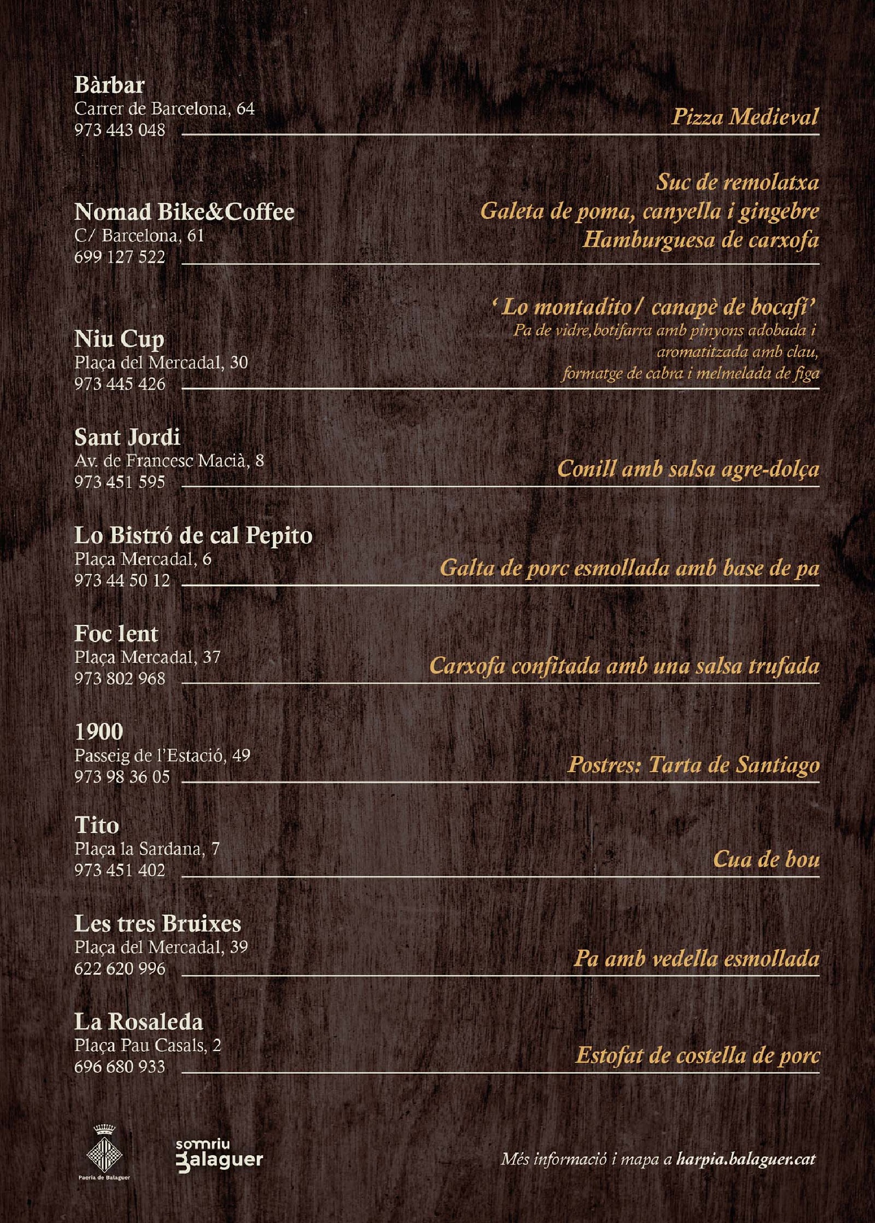 Els actes de l'Harpia, Balaguer medieval, comencen enguany dijous amb una ruta gastronòmica per un total de 10 bars i restaurants de la ciutat, acompanyats d'una cercavila amb el grup Els Taverners i Maria Bullfarines.