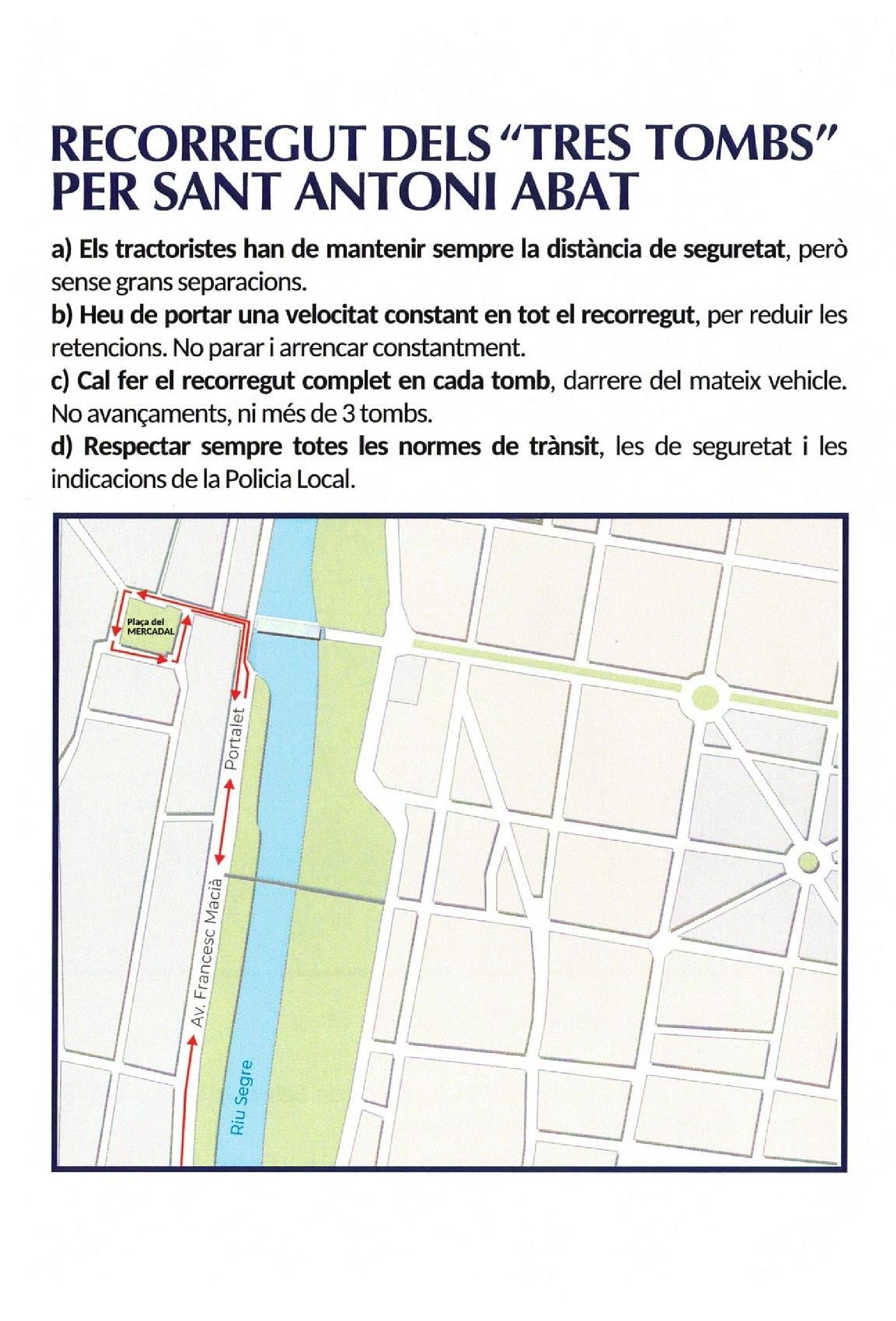 Ja a les 12 del migdia es realitzaran els tradicionals Tres Tombs a la Plaça del Mercadal. Com és habitual, primer passaran les carrosses a concurs i seguidament els tractors i la resta de maquinària. A l'inici del tercer tomb els tractoristes seran obsequiats amb un present.
