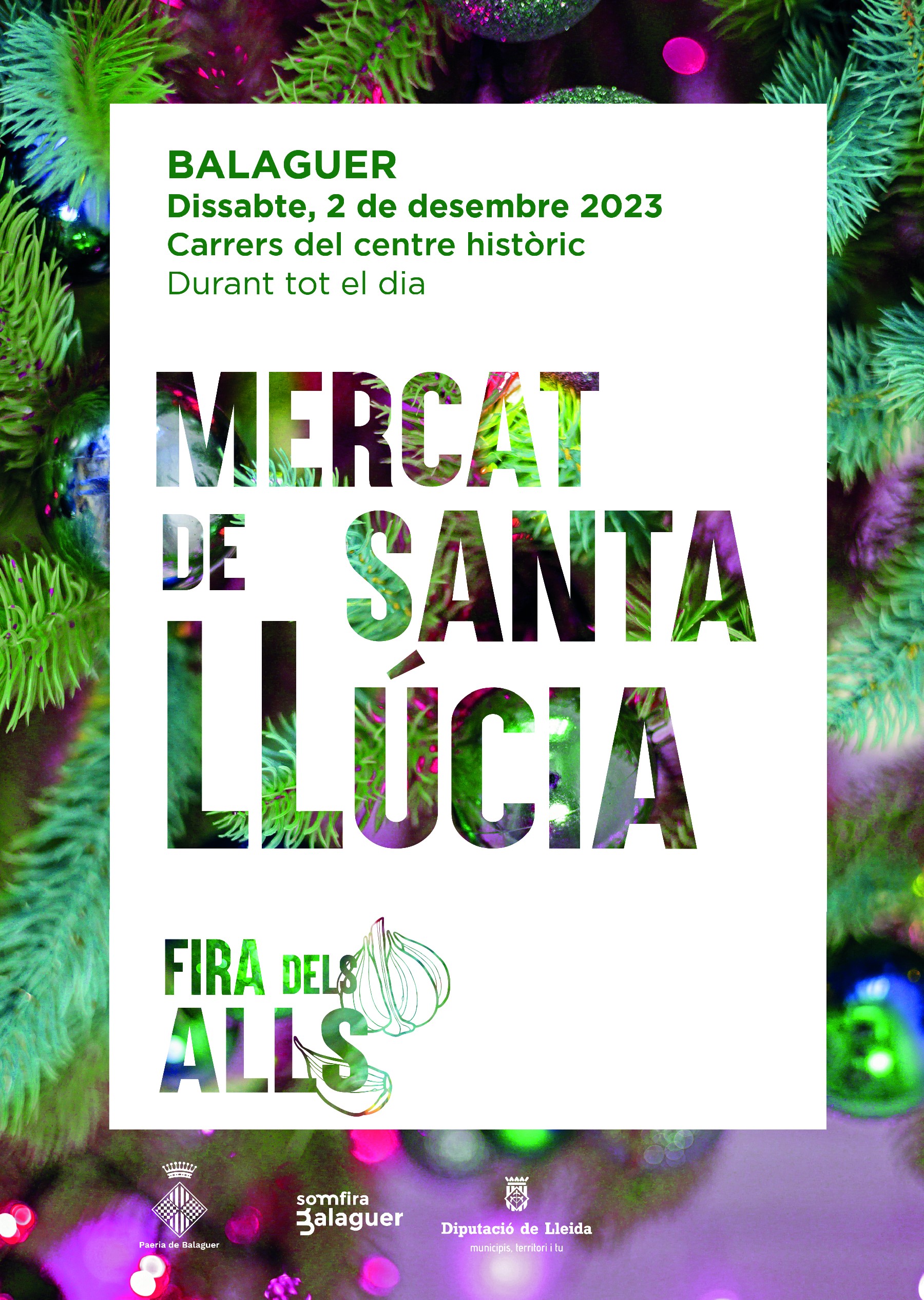 La primera acció comercial de les properes festes tindrà lloc l'endemà mateix, el dissabte dia 2 de desembre, dia en què se celebrarà a la ciutat la Fira Mercat de Santa Llúcia, una de les fires amb més història i tradició, anomenada també com la Fira dels Alls.