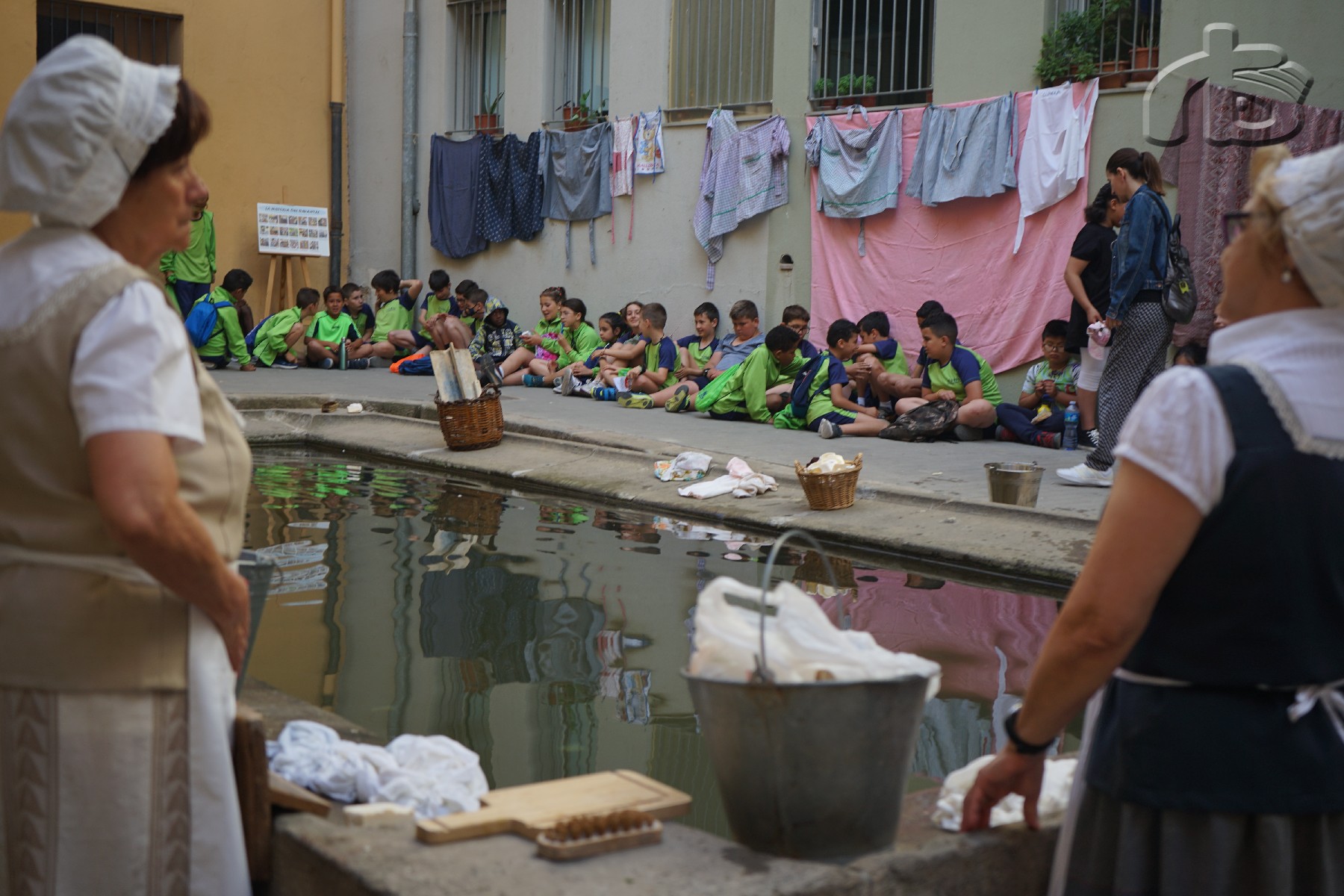 Els escolars han visitat l'Hparia en el marc d'un recorregut que han fet pel centre històric per conèixer el mercat medieval i l'espai de la Reguereta, on l'entitat Dona Rural recrea l'activitat del rentador públic.